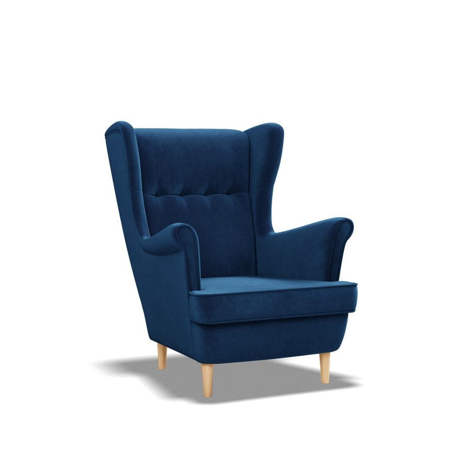 Fotel skandynawski, Velo Mini Lux, 54x60x73 cm, granatowy. Fotel Uszak Velo Mini to idealne rozwiązanie dla rodziców, którzy chcą zapewnić swoim dzieciom maksymalny komfort i styl. Zaprojektowany z myślą o najmłodszych, ten mniejszy odpowiednik klasycznego fotela Uszak jest perfekcyjnym miejscem do czytania, zabawy, czy relaksu dla Twojego dziecka.