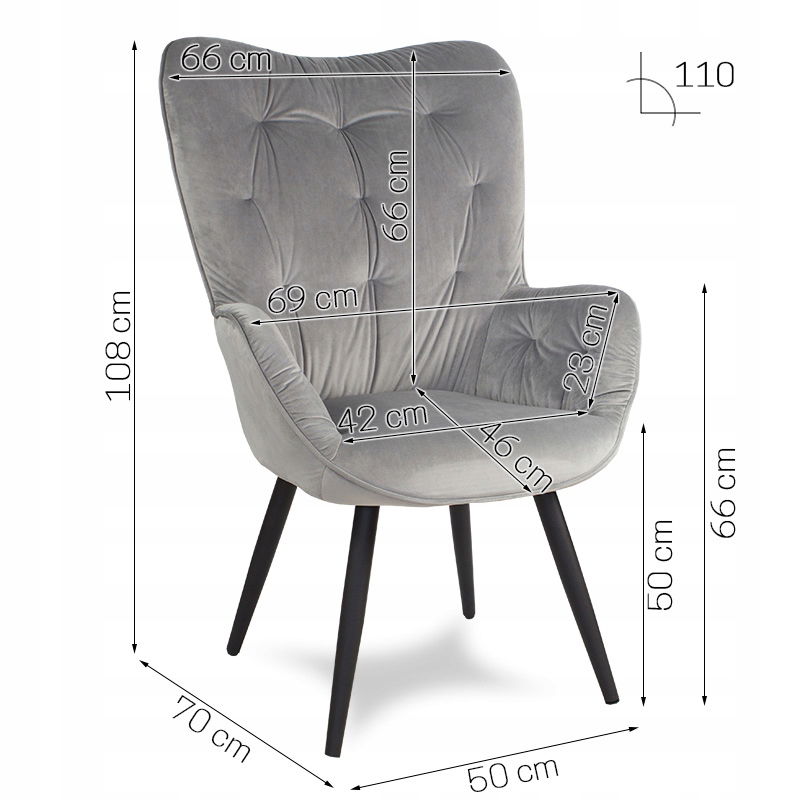 - Kąt nachylenia oparcia 115°