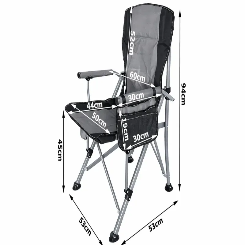 Miękkie podłokietniki odciążają ręce i zwiększają komfort użytkowania. To szczególnie ważne podczas dłuższego siedzenia – zarówno nad wodą, jak i podczas biwaku czy grillowania.