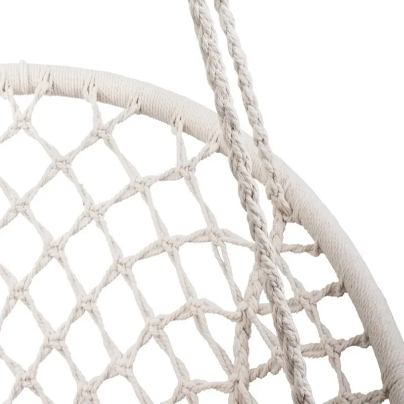 Fotel wykonany jest z wytrzymałego plecionego sznurka typu siatka, podobnie jak grubo plecione sznury. Wszystko to sprawia, że jest wytrzymały oraz przepuszcza powietrze, dzięki czemu używanie go będzie bardzo przyjemne.