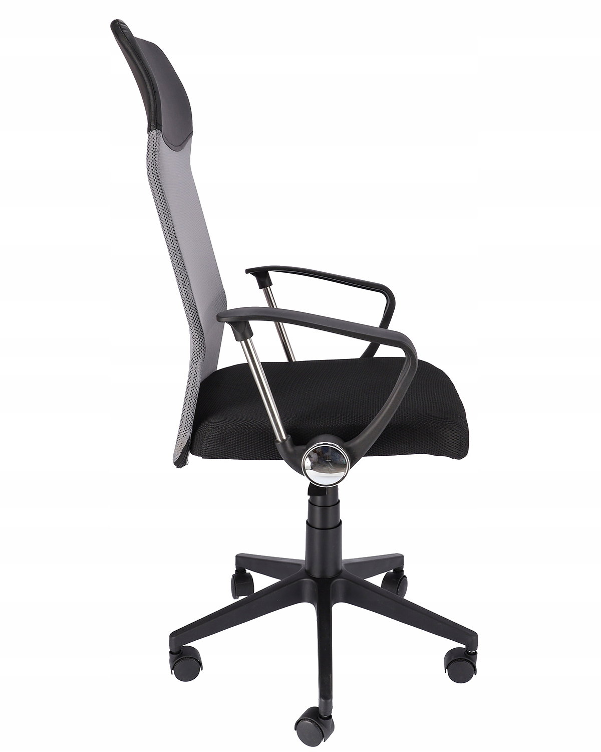 Wysokie, wyprofilowane oparcie w połączeniu z miękkim siedziskiem zapewnia dużą wygodę, a pięcioramienna podstawa zakończona niewielkimi plastikowymi kółkami daje dużą stabilność. Krzesło posiada siłownik, który pozwala dostosować wysokość siedzenia do wymaganych potrzeb.