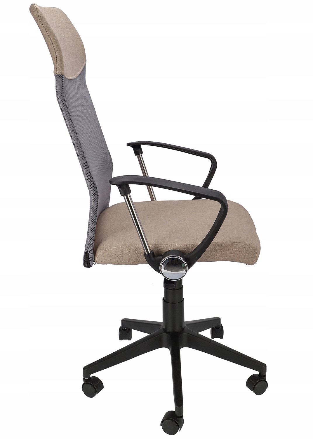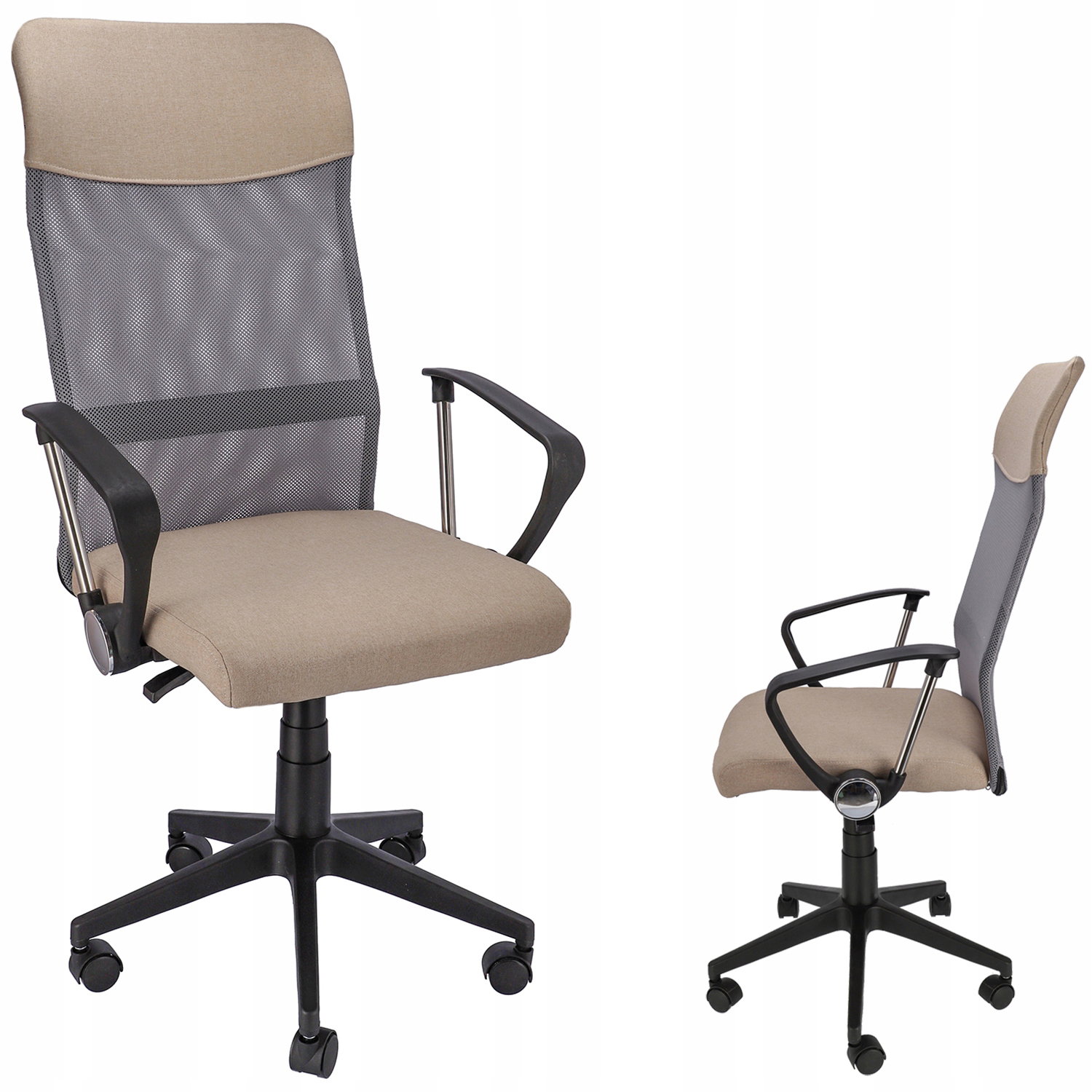 Wysokie, wyprofilowane oparcie z ergonomicznej siatki w połączeniu z eleganckim materiałem wygląda bardzo szykownie, a miękkie siedzisko zapewnia dużą wygodę. Pięcioramienna podstawa zakończona niewielkimi plastikowymi kółkami daje dużą stabilność, a siłownik pozwala dostosować wysokość siedzenia do wymaganych potrzeb.