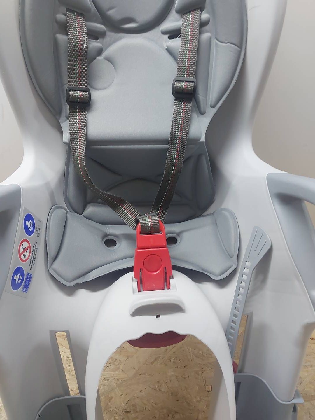 Fotelik rowerowy na tylne koło z nowym systemem mocowania, regulowane oparcie i automatyczny system zabezpieczania punktu ciężkości