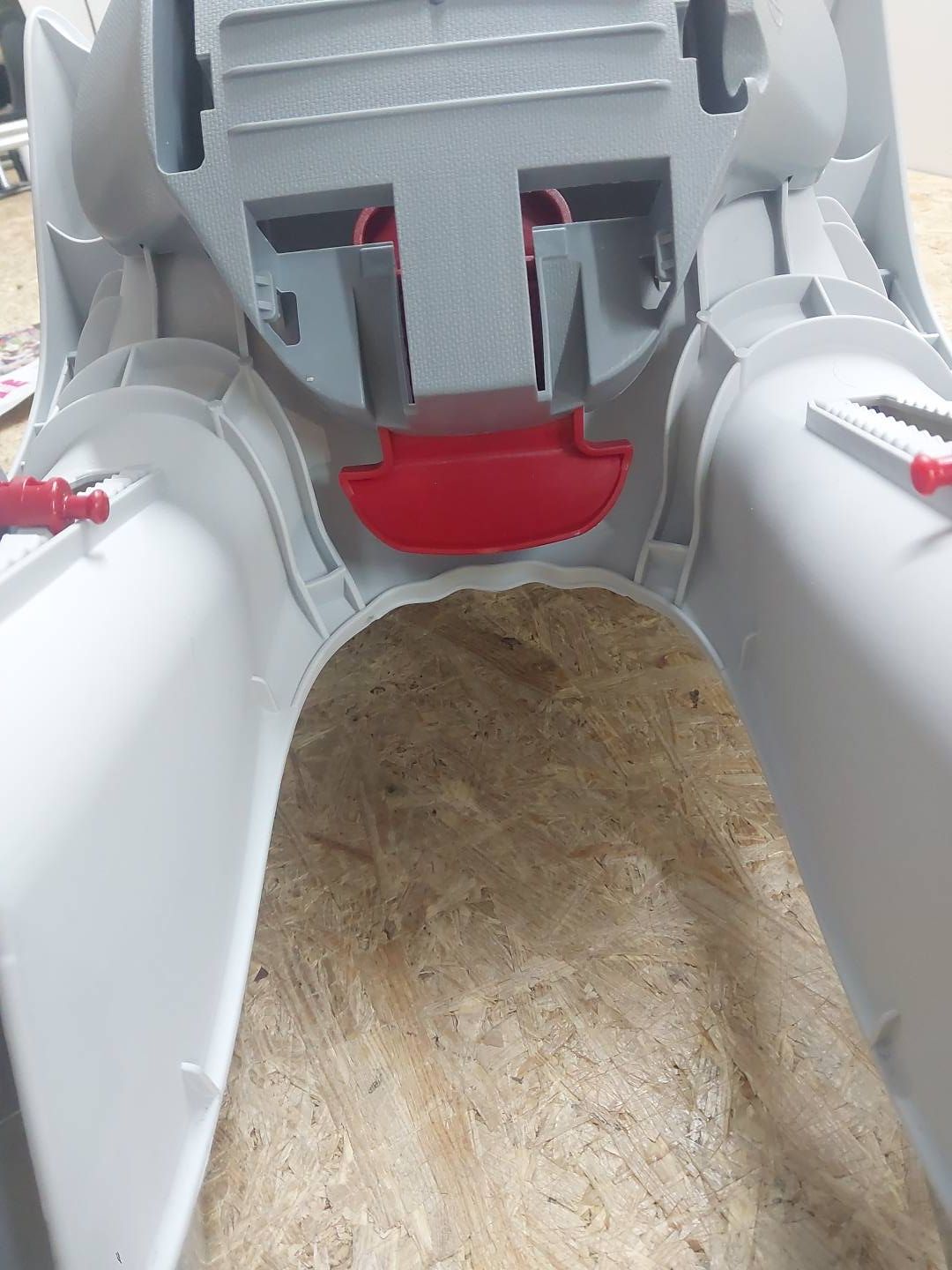 Podnóżki z regulacją wysokości, regulacja od tyłu w 15 pozycjach. Dziecko może zostawić stopy w podnóżku. Wyposażona w pasy bezpieczeństwa, aby zapobiec kontaktowi nóg ze szprychami kół.