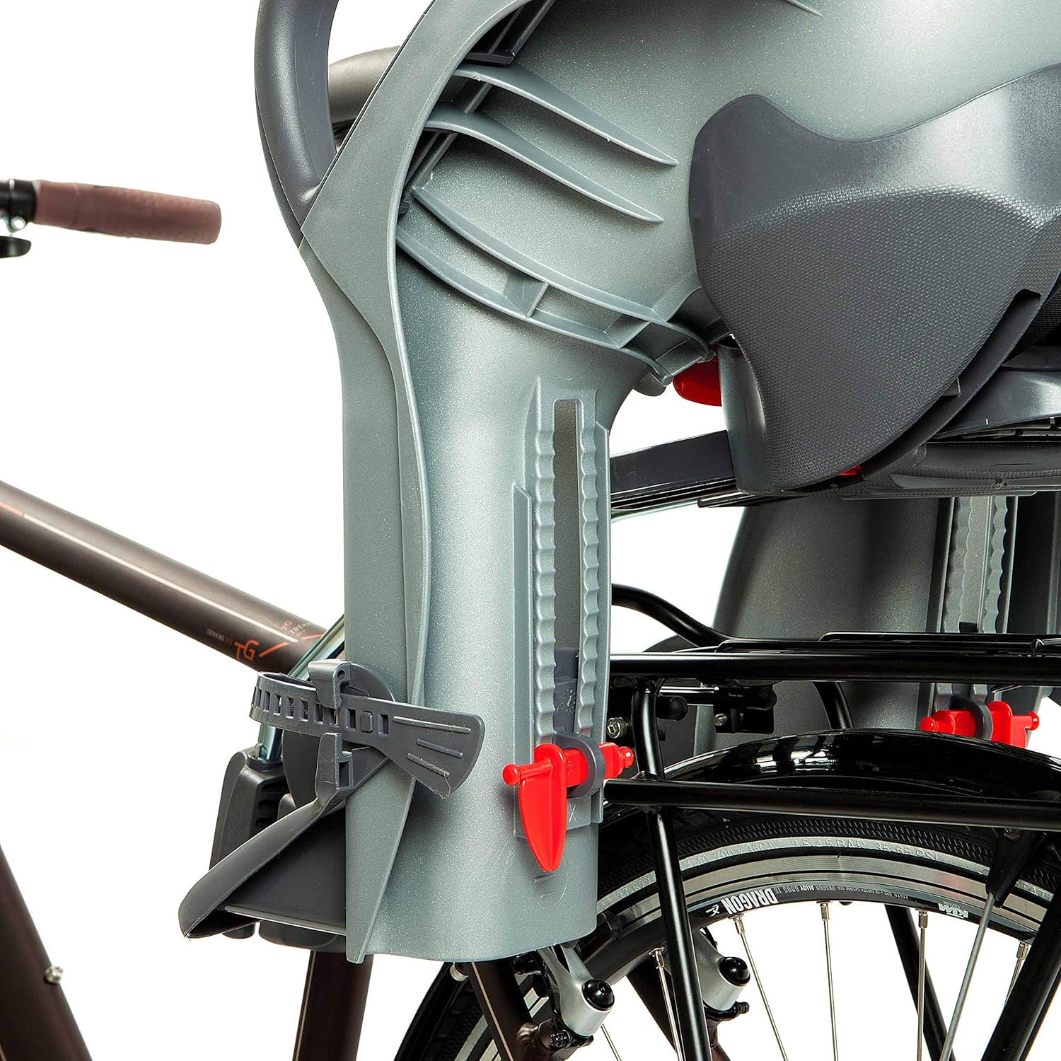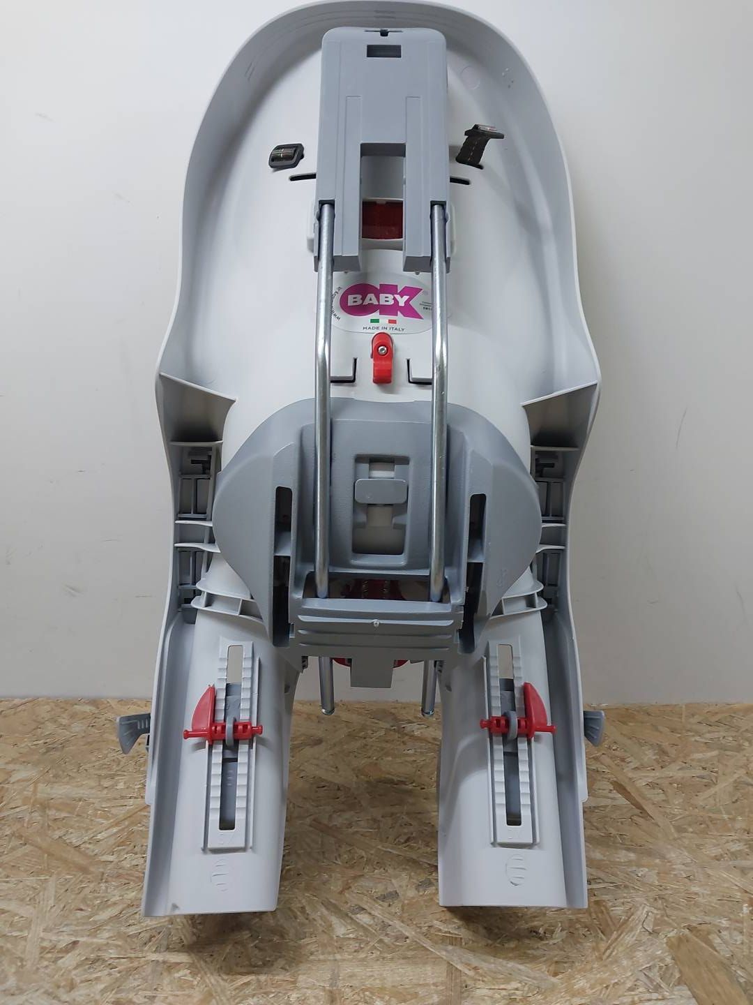 - Fotelik rowerowy na tylne koło z nowym systemem mocowania, regulowane oparcie i automatyczny system zabezpieczania punktu ciężkości