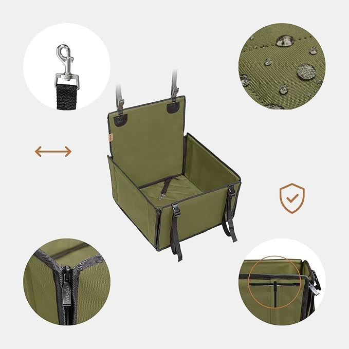 Fotelik Samochodowy dla Psa na tylne siedzenie z 4 pasami mocującymi Khaki