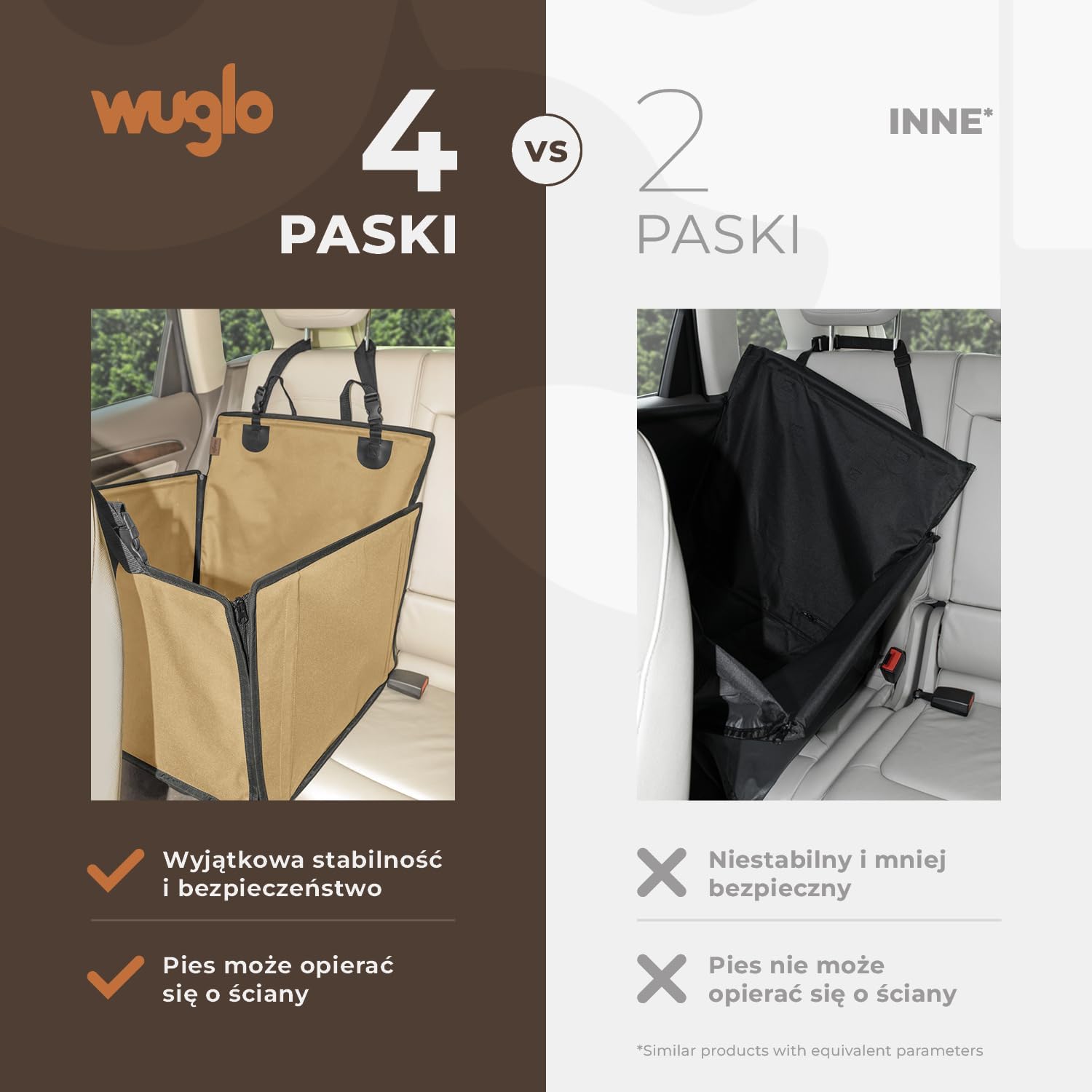 Transporter samochodowy dla psa oferuje wyjątkową stabilność i bezpieczeństwo dzięki czterem pasom i mocowaniu. Dzięki regulowanemu pasowi bezpieczeństwa Twój pupil będzie zawsze na swoim miejscu.