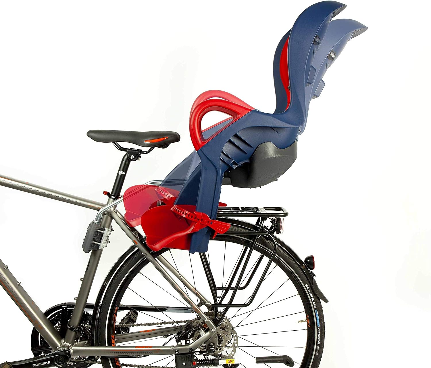 Fotelik rowerowy na tylne koło z nowym systemem mocowania, regulowane oparcie i automatyczny system zabezpieczania punktu ciężkości