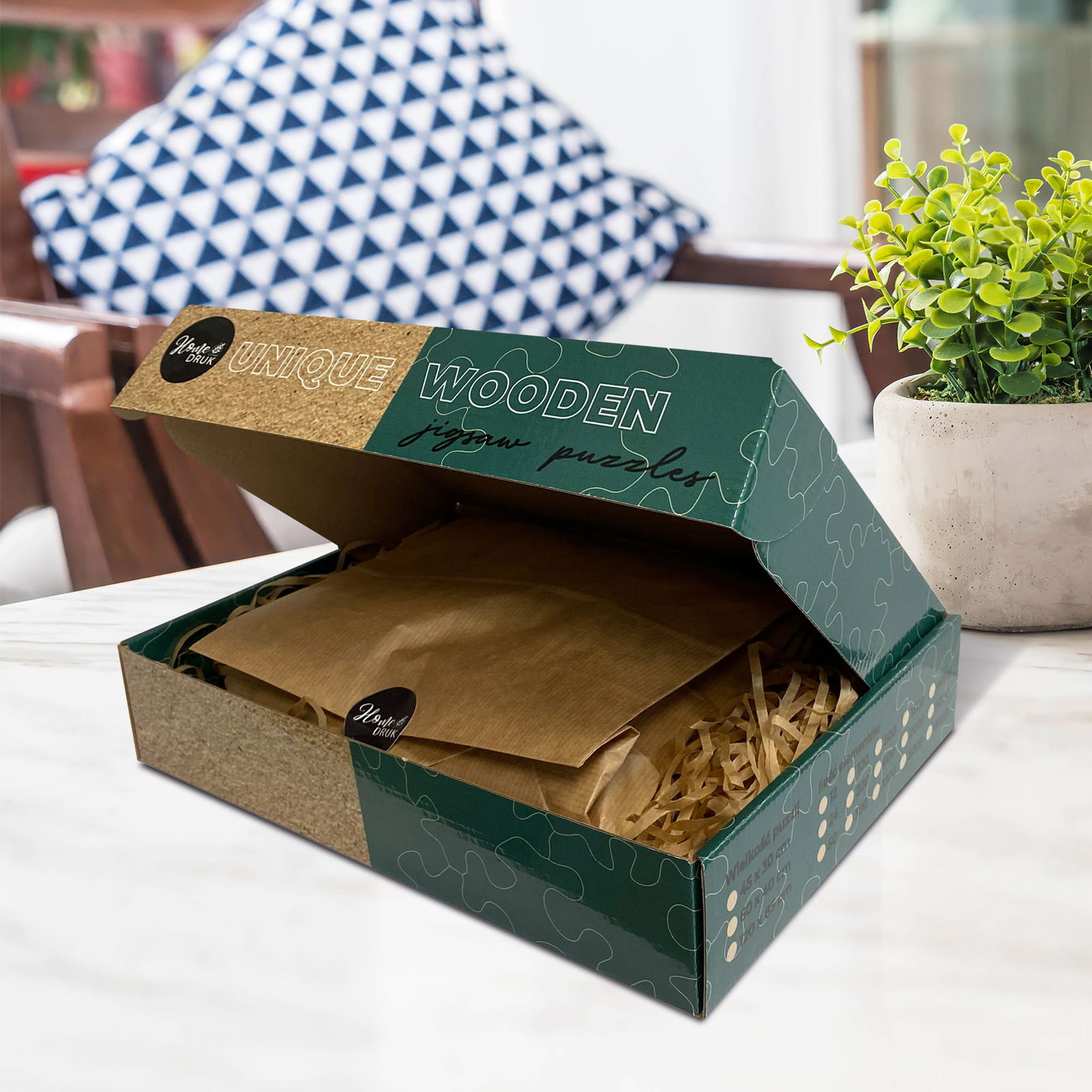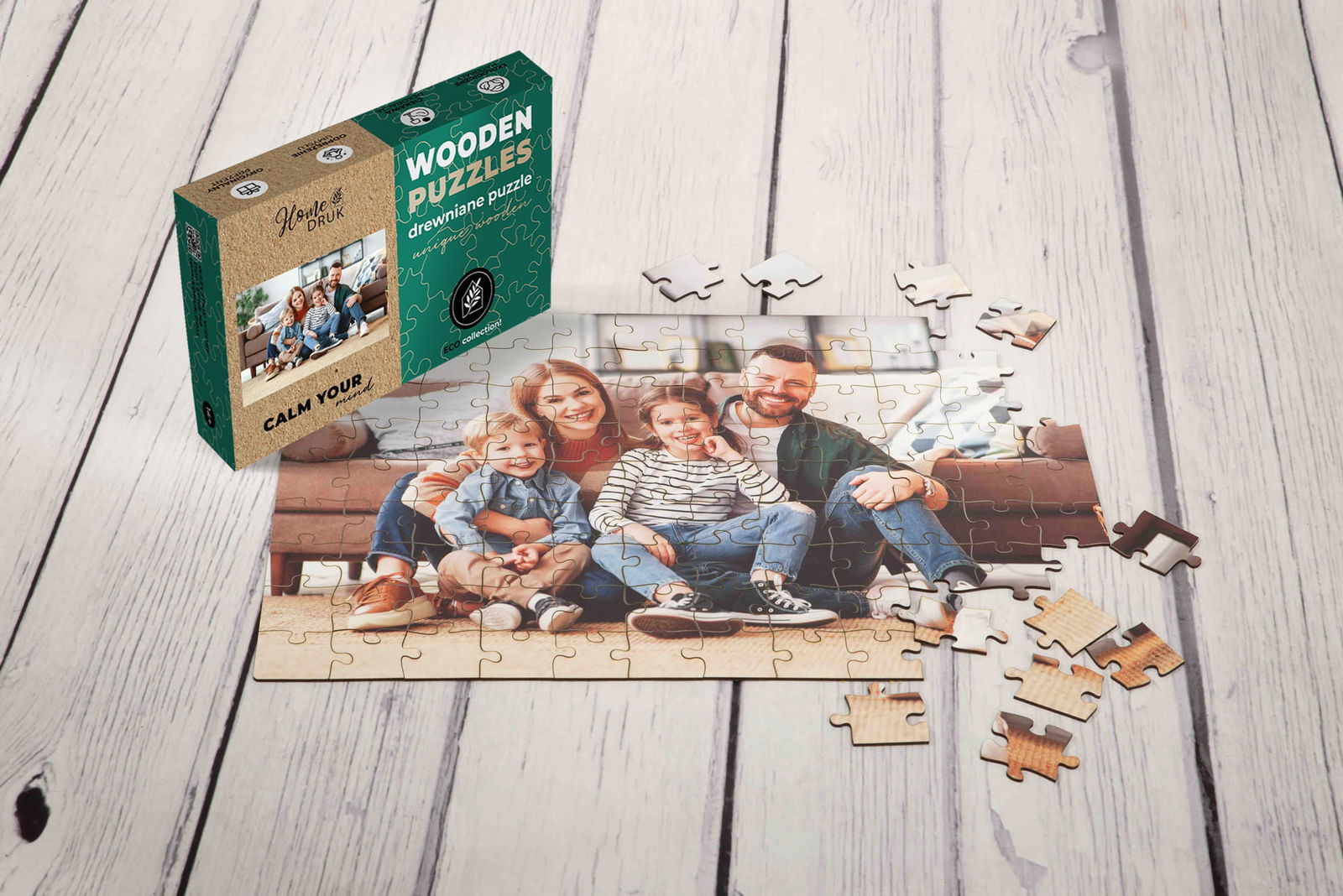 Puzzle drukowane z wybranym przez Ciebie zdjęciem to stosunkowo nowa koncepcja w porównaniu ze standardowymi tekturowymi puzzlami. Kawałki drewnianych puzzli są znacznie mocniejsze, a drewno daje przyjemne wrażenie podczas trzymania puzzli w porównaniu do standardowych puzzli kartonowych. Podczas zabawy poczujesz delikatny, aczkolwiek charakterystyczny zapach drewna.