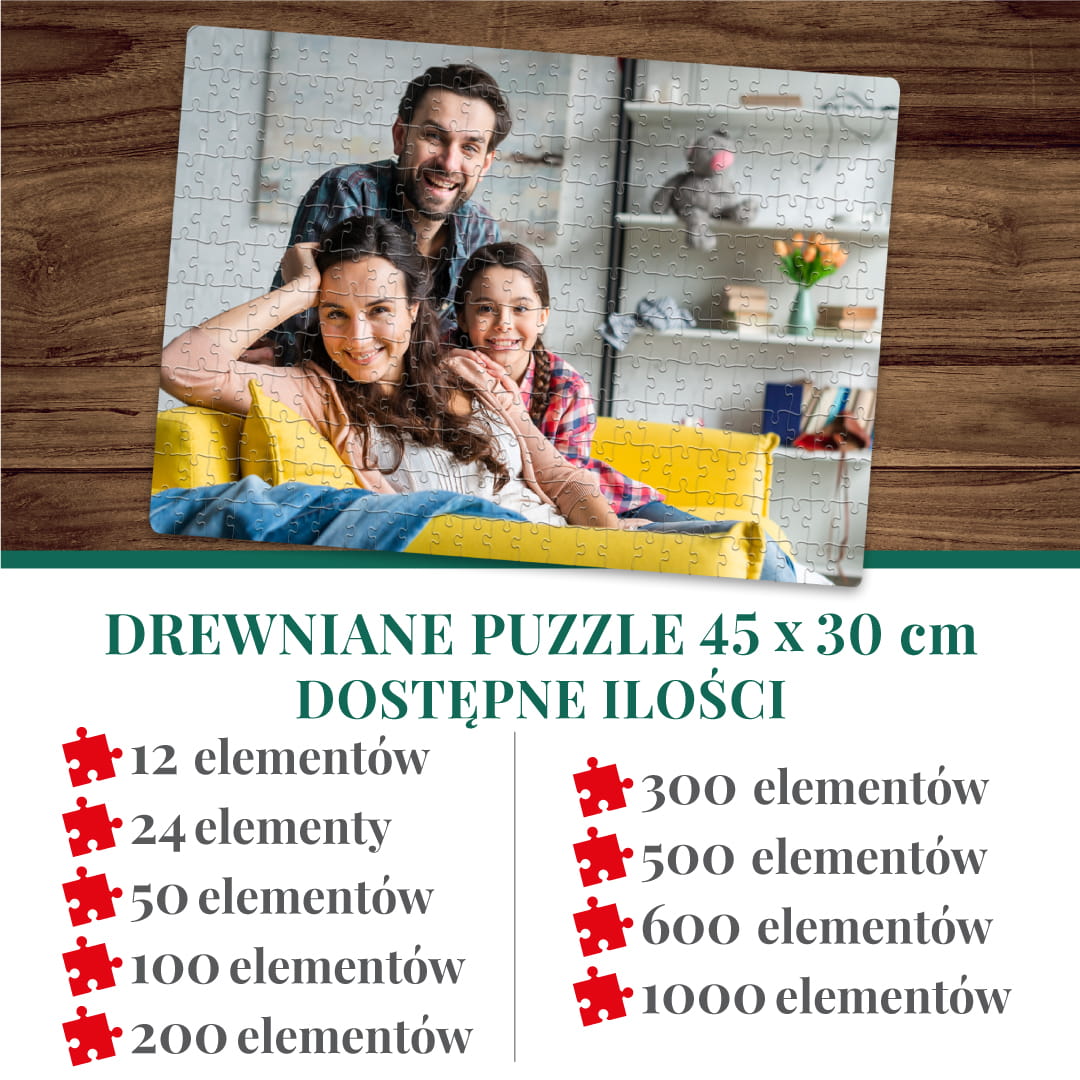 FOTO PUZZLE DREWNIANE z TWOJEGO ZDJĘCIA NA PREZENT 100 elementów 45x30 cm