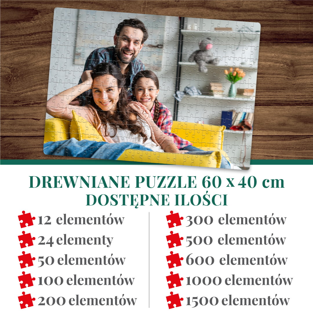 FOTO PUZZLE DREWNIANE z TWOJEGO ZDJĘCIA NA PREZENT 1500 elementów 60x40cm