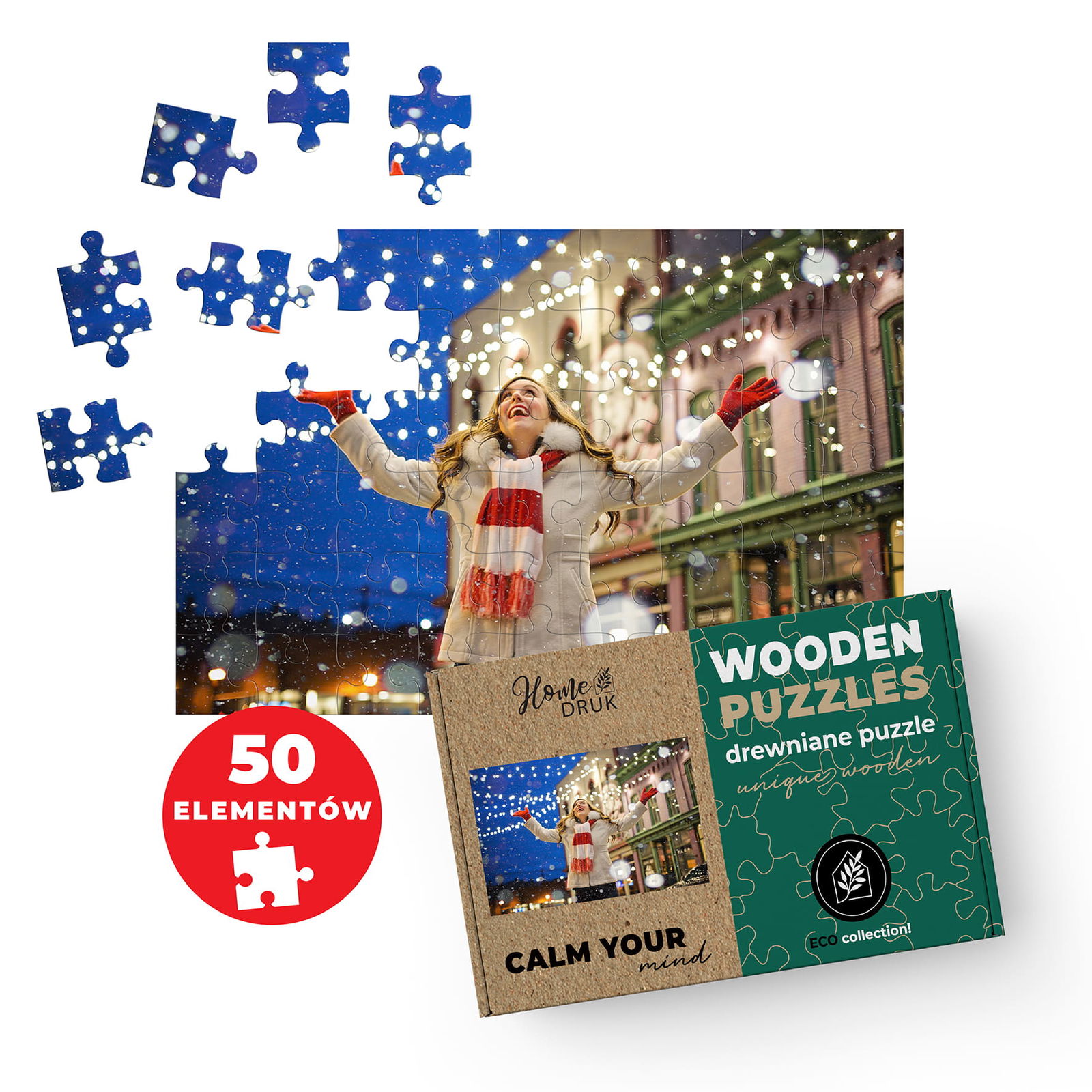 Puzzle drukowane z wybranym przez Ciebie zdjęciem to stosunkowo nowa koncepcja w porównaniu ze standardowymi tekturowymi puzzlami. Kawałki drewnianych puzzli są znacznie mocniejsze, a drewno daje przyjemne wrażenie podczas trzymania puzzli w porównaniu do standardowych puzzli kartonowych. Podczas zabawy poczujesz delikatny, aczkolwiek charakterystyczny zapach drewna.