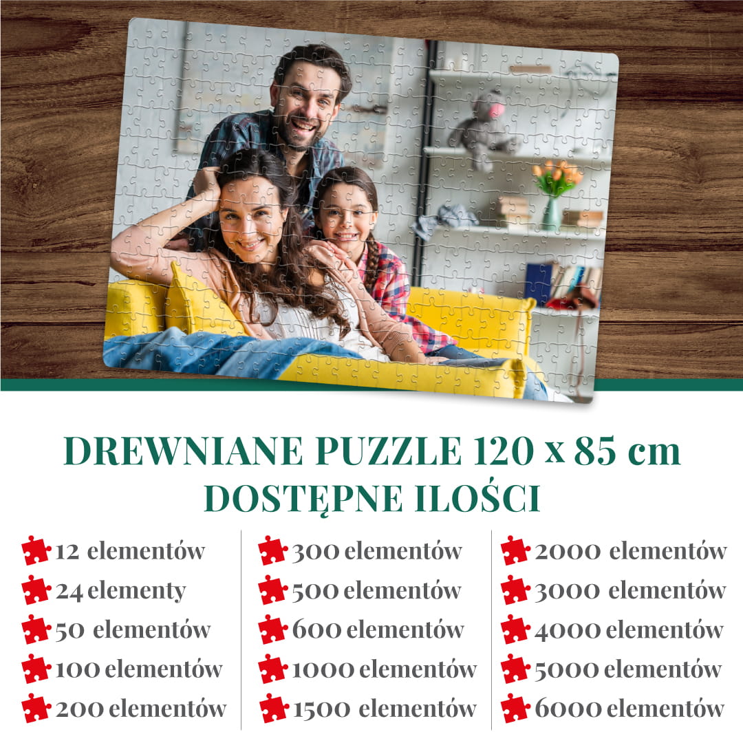FOTO PUZZLE DREWNIANE z TWOJEGO ZDJĘCIA XXL 120cm x 85cm 12 el.