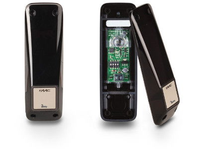 Nowe regulowane fotokomórki XP 20B D składają się z nadajnika i odbiornika działającego w oparciu o modulowane pasmo promieni podczerwonych o zasięgu do 20 m. Załamanie wiązki promieni powoduje zmianę trybu działania odbiornika.Niezwykle kompaktowe wymiary: 41x130x42 mm. Możliwość wprowadzenia kabla zarówno do części tylnej, jak i dolnej obudowy (16 mm) oraz montowania na wsporniku. Nowe fotokomórki, umożliwiające zarówno montaż naścienny jak i na wsporniku, oferują możliwość mechanicznej regulacji poziomego kąta widzenia o 180° (od - 90° do +90°) oraz zostały wyposażone w funkcję pionowej, optycznej samoregulacji, szczególnie przydatną w przypadku, gdy monitorowany teren nie jest obszarem w całości płaskim.