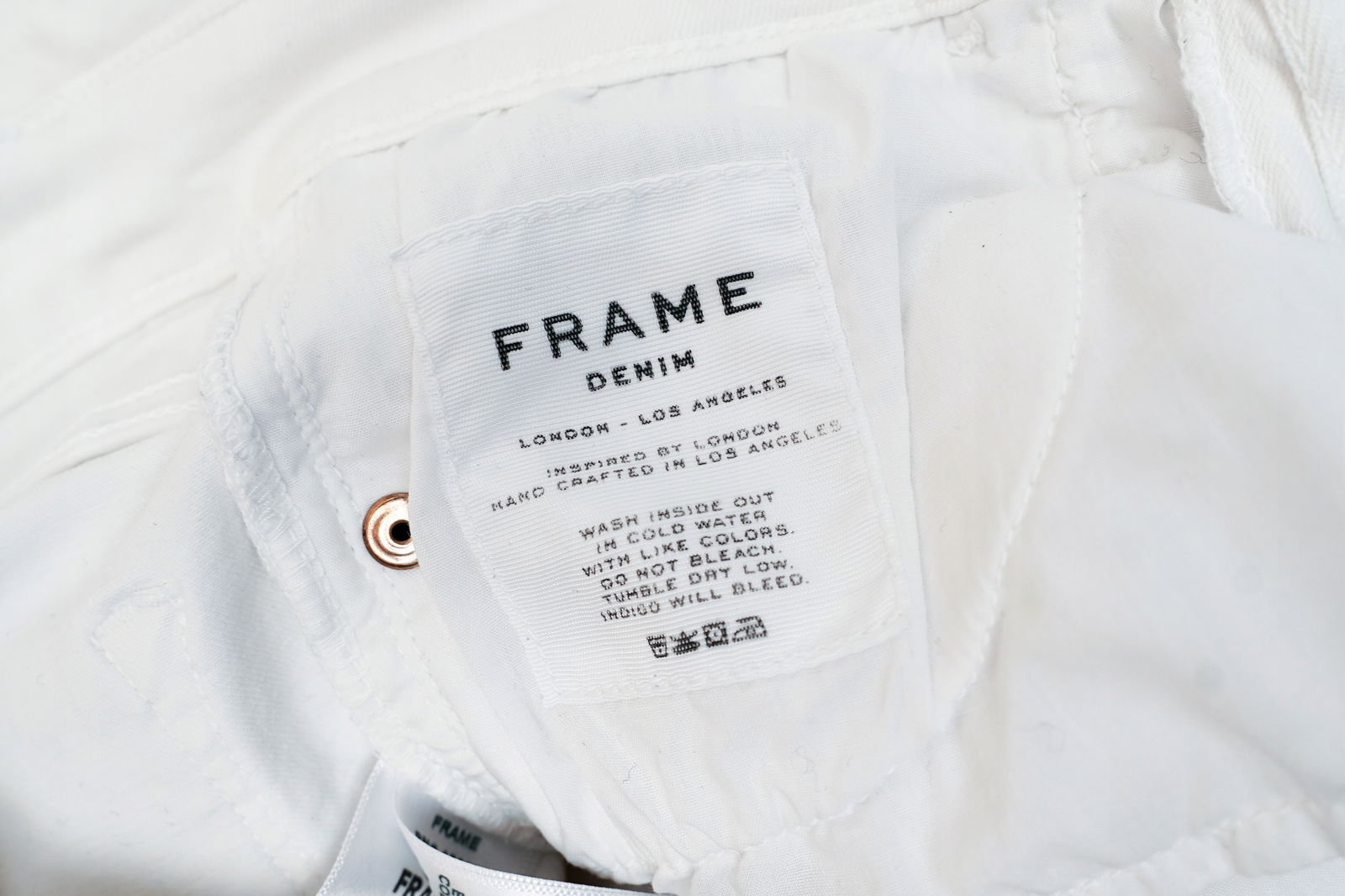 ❇️ Wysoka jakość: świetna jakość materiałów zapewniona przez premium markę FRAME, dbałość o szczegóły. Spodnie "made in USA" - wykonywane w siedzibie firmy w Los Angeles, a design spodni powstaje w Londynie.
