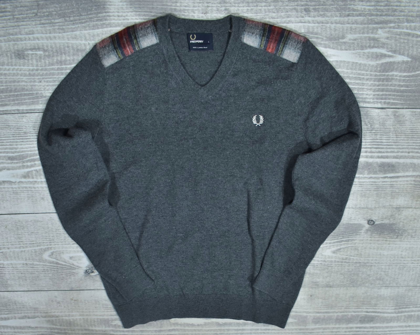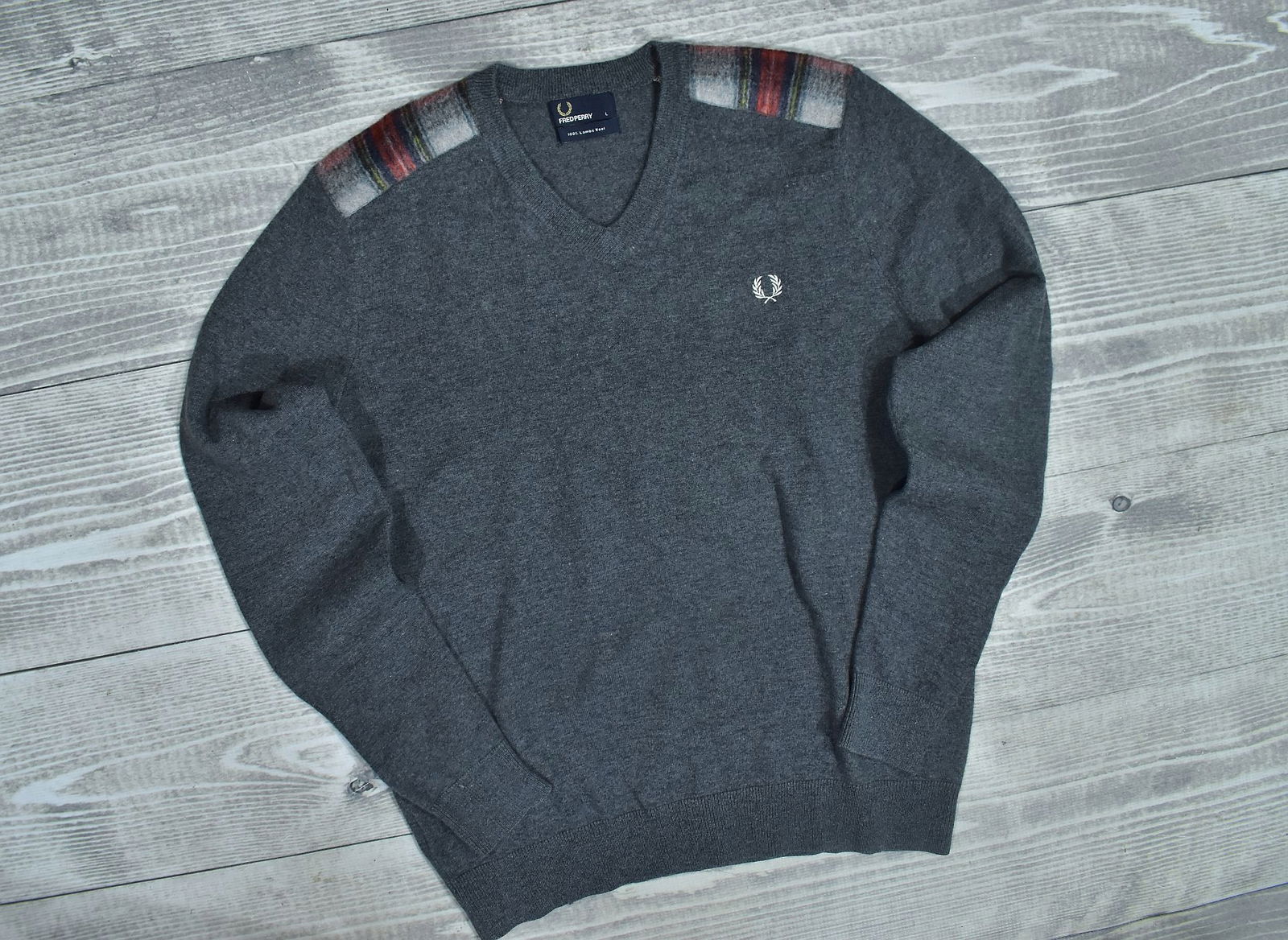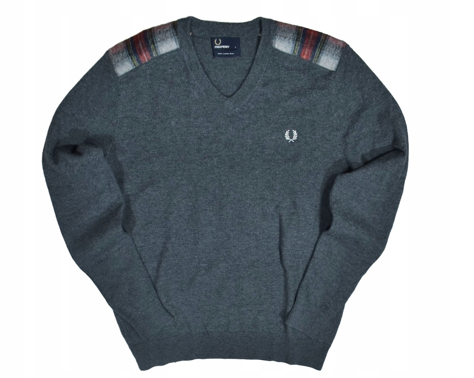 FRED PERRY Szary Wełniany Sweter Męski Vneck L