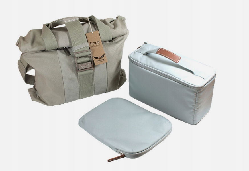 W środku Friar Photobag znajduje się wyjmowana wkładka do aparatu na obszerny sprzęt. Bezpiecznie zmieszczą się jedna lustrzanka DSLR i maksymalnie dwa obiektywy. Miękki welur poliestrowy chroni wszystkie wrażliwe części. Standardowy separator i składany separator mogą być używane na różne sposoby dzięki zapięciu na rzepy, dzięki czemu kamera jest bezpiecznie na miejscu. Dwie kieszenie w pokrywie wsypy zapewniają miejsce na filtry biegunowe lub inne małe akcesoria. Obie są zabezpieczone zapięciem na rzepy. Sama wsypa może być zamykana na zamek błyskawiczny i posiada dodatkowy uchwyt na klapie pokrywy. Dzięki temu w mgnieniu oka z torby na aparat stanie się wózkiem zakupowym, podczas gdy sprzęt fotograficzny może bezpiecznie czekać w domu lub w hotelu.