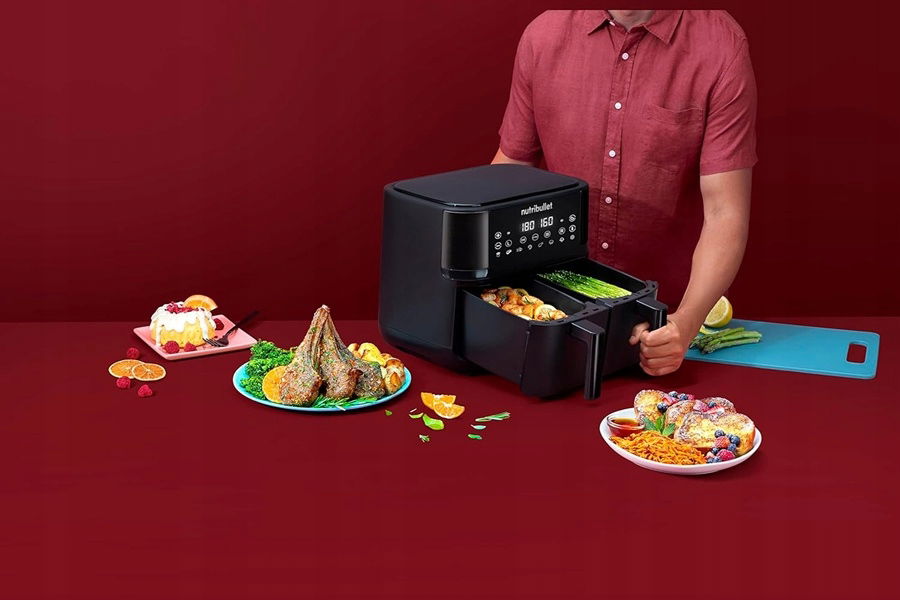 - Dzięki dwóm misom o pojemności 4 l każda, szerokiemu zakresowi temperatur i 8 programom gotowania, nutribullet Twin Drawer Air Fryer ułatwia i przyspiesza przygotowania ulubionych posiłków.