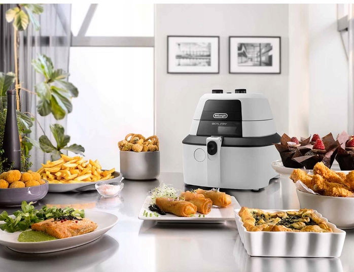 - Możliwość łatwego przygotowywania zdrowych i smacznych posiłków to cechy charakterystyczne frytkownicy DeLonghi.