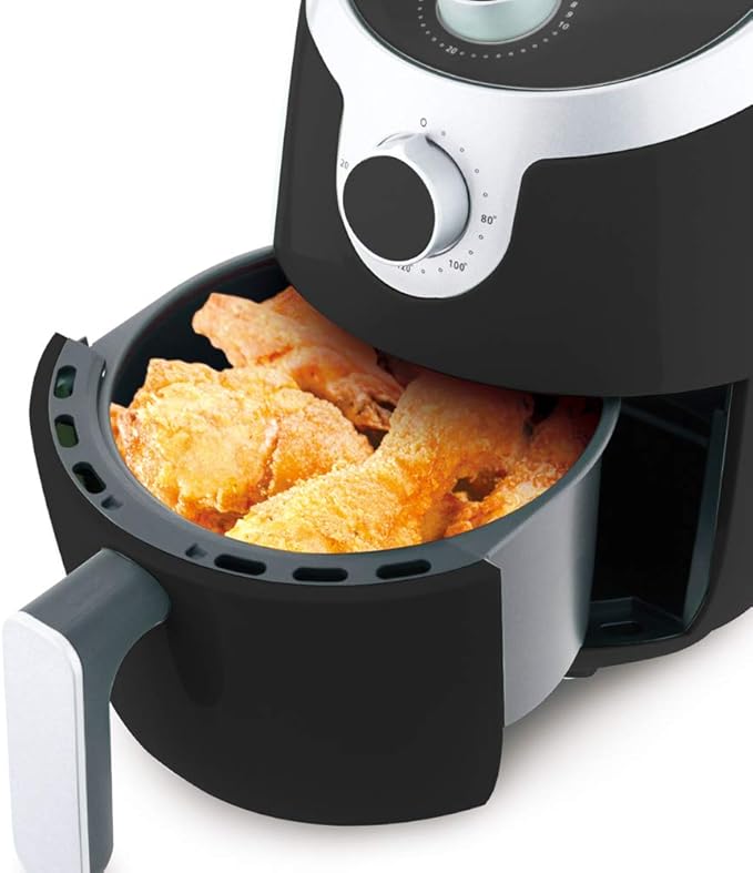 Frytkownica na gorące powietrze nadaje się do gotowania z gorącym powietrzem. Dzięki temu można smażyć, grillować, smażyć, prażyć, podgrzewać, utrzymywać ciepło i rozmrażać. Dzięki szybkiej cyrkulacji powietrza można w prosty sposób przygotować chipsy lub inne przekąski bez dodawania tłuszczu do smażenia lub oleju. Dzięki temu jedzenie nabiera chrupiącej skórki, ale od wewnątrz pozostaje świeże i soczyste. Ponieważ nie stosuje się tłuszczu, jedzenie jest oczywiście o wiele zdrowsze niż stosowanie tradycyjnej frytkownicy.