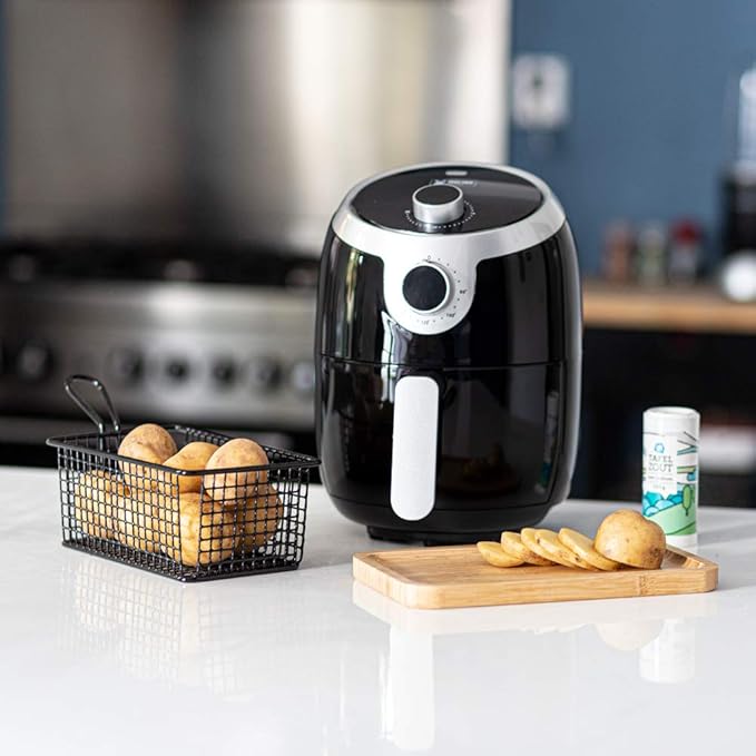 - Kompaktowy rozmiar: większość frytkownic jest duża, przeszkadza lub jest zbyt ciężka, aby je przechowywać. Mini Airfryer marki Molino jest wystarczająco kompaktowy, aby pomieścić kuchenkę, ale również praktyczny do zabrania ze sobą. Dzięki pojemności 1,8 litra urządzenie Molino Health Fryer jest idealne dla 1 do 2 osób