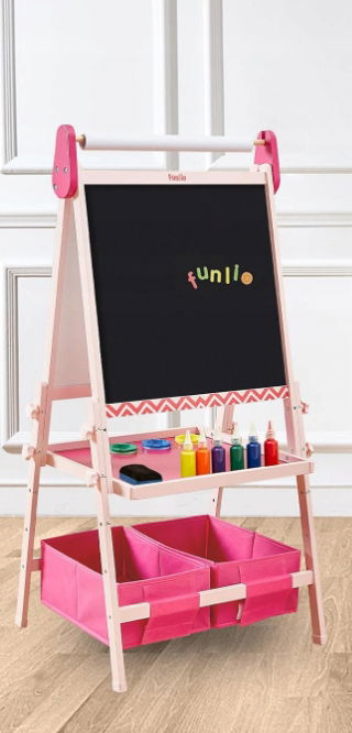 - ✴️3-stopniowa regulacja wysokości, łatwa w montażu i przechowywaniu: Sztaluga dziecięca FUNLIO jest regulowana na 3 wysokościach od 100 cm do 120 cm. Deska ma wymiary 45,7 cm x 45,7 cm. Będzie to przyjaciel, który rośnie wraz z Twoim maluchem. Z 1 tacą i 2 workami do przechowywania. W celu łatwego przechowywania po jednej stronie tacy znajdują się 3 filiżanki. Worki do przechowywania są mocowane do sztalugi za pomocą zapięcia na rzepy i można je łatwo zdjąć i zainstalować.