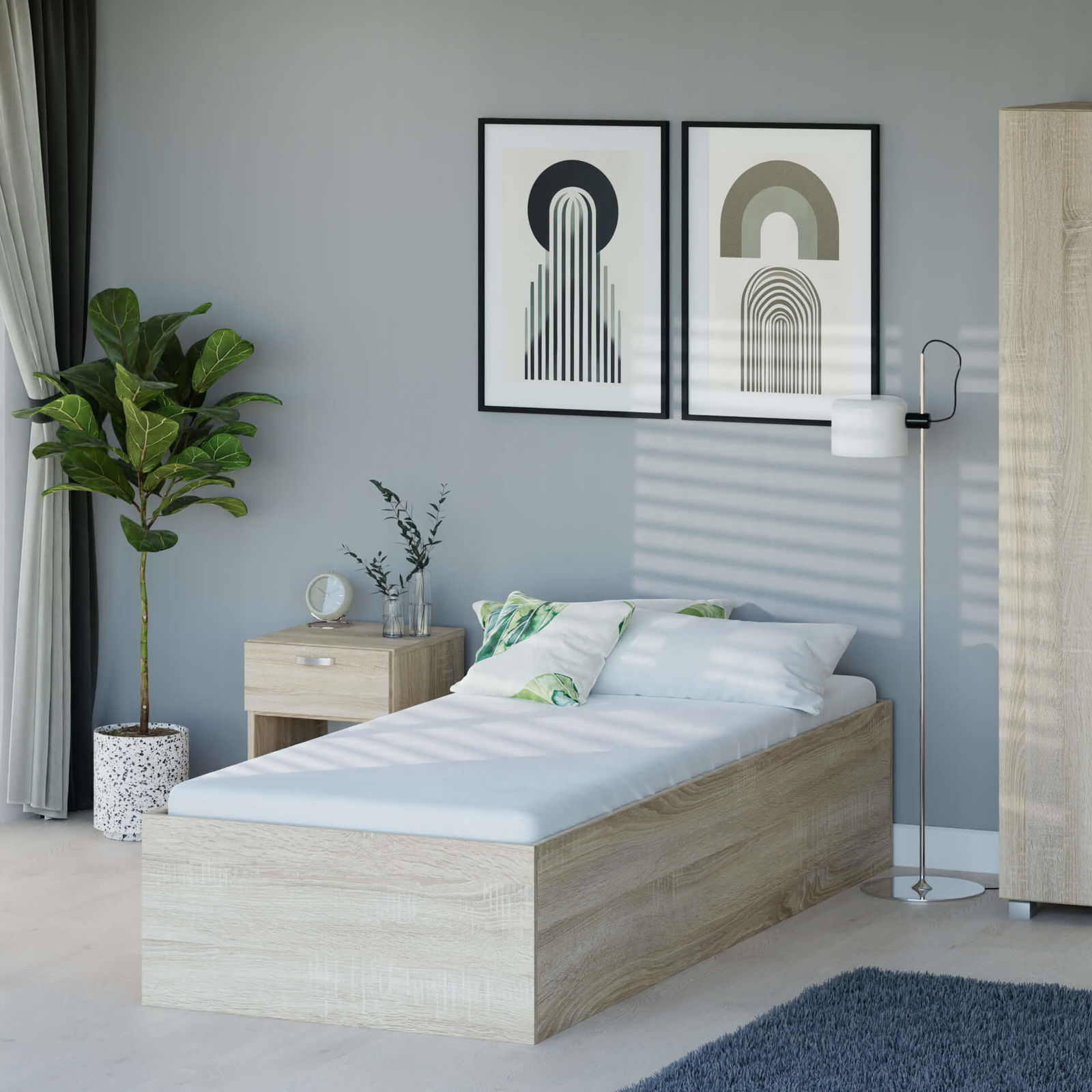 Furimi Łóżko, 180x90, Dąb Sonoma