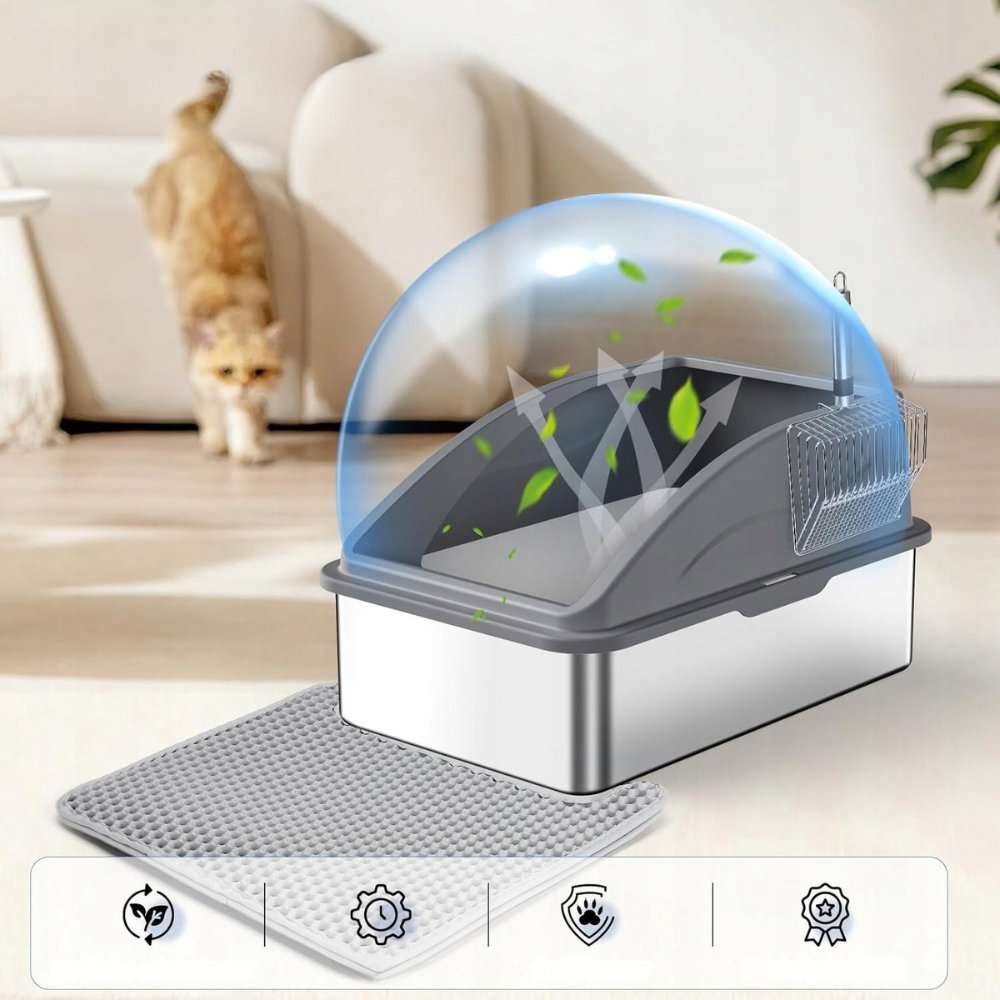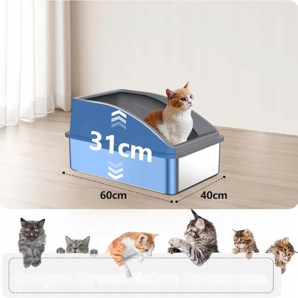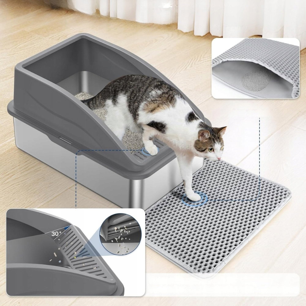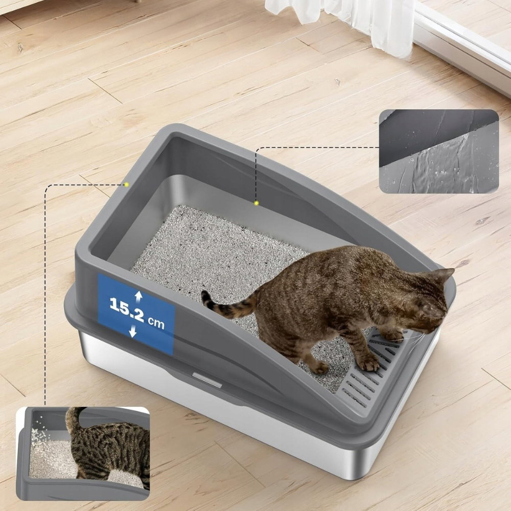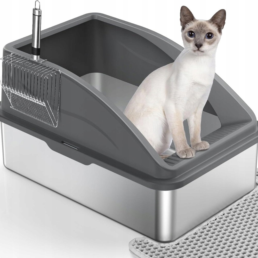 ✨ FURTIME Duża Kuweta dla Kota XXL ze Stali Nierdzewnej – Szara ✨