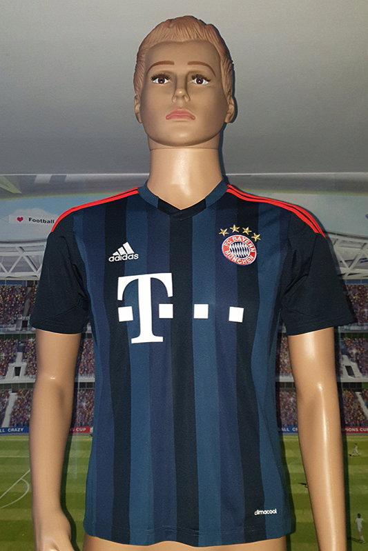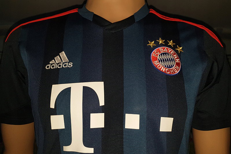 Co do stanu technicznego tej piłkarskiej koszulki drużyny występującej w niemieckiej Bundeslidze – F.C. Bayern Monachium (Fußball-Club Bayern München e.V.), wyprodukowanej przez koncern Adidas (Climacool), to jest on…bardzo dobry.