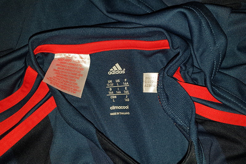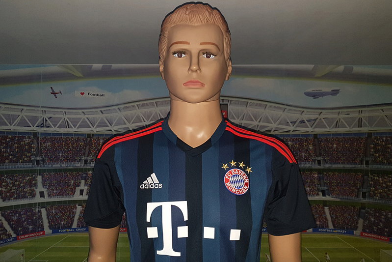Oto dokładne wymiary tej piłkarskiej koszulki drużyny występującej w niemieckiej Bundeslidze – F.C. Bayern Monachium (Fußball-Club Bayern München e.V.), wyprodukowanej przez koncern Adidas (Climacool):