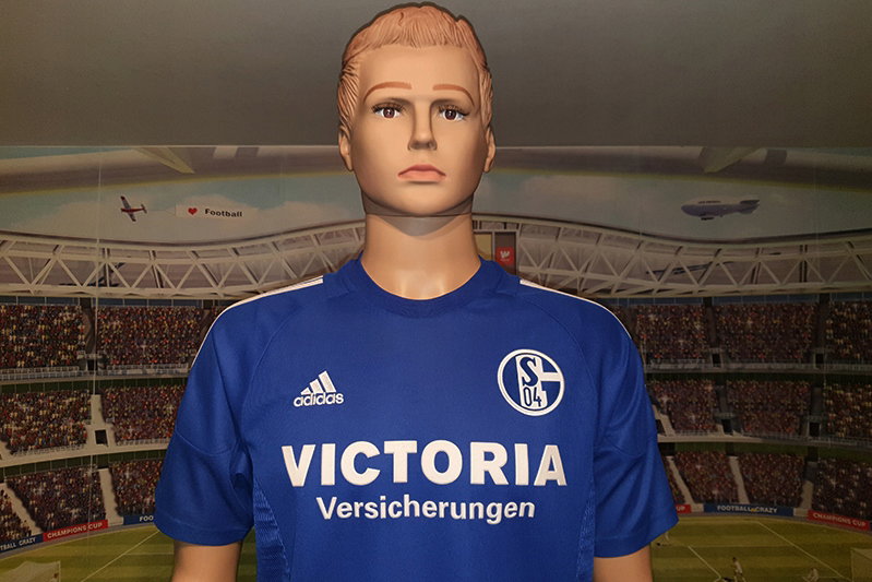 Oto dokładne wymiary tej piłkarskiej koszulki drużyny występującej w niemieckiej 2.Bundeslidze – FC Schalke 04 (Fußballclub Gelsenkirchen-Schalke 04 e.V.), wyprodukowanej przez koncern Adidas /Climalite/: