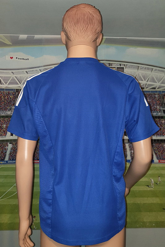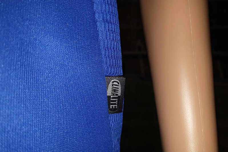 Koszulka posiada krótkie rękawki i dominuje w niej kolor niebieski wraz z biało – czarno - srebrnymi „dodatkami” zaś kołnierzyk tego piłkarskiego trykotu jest okrągły.
