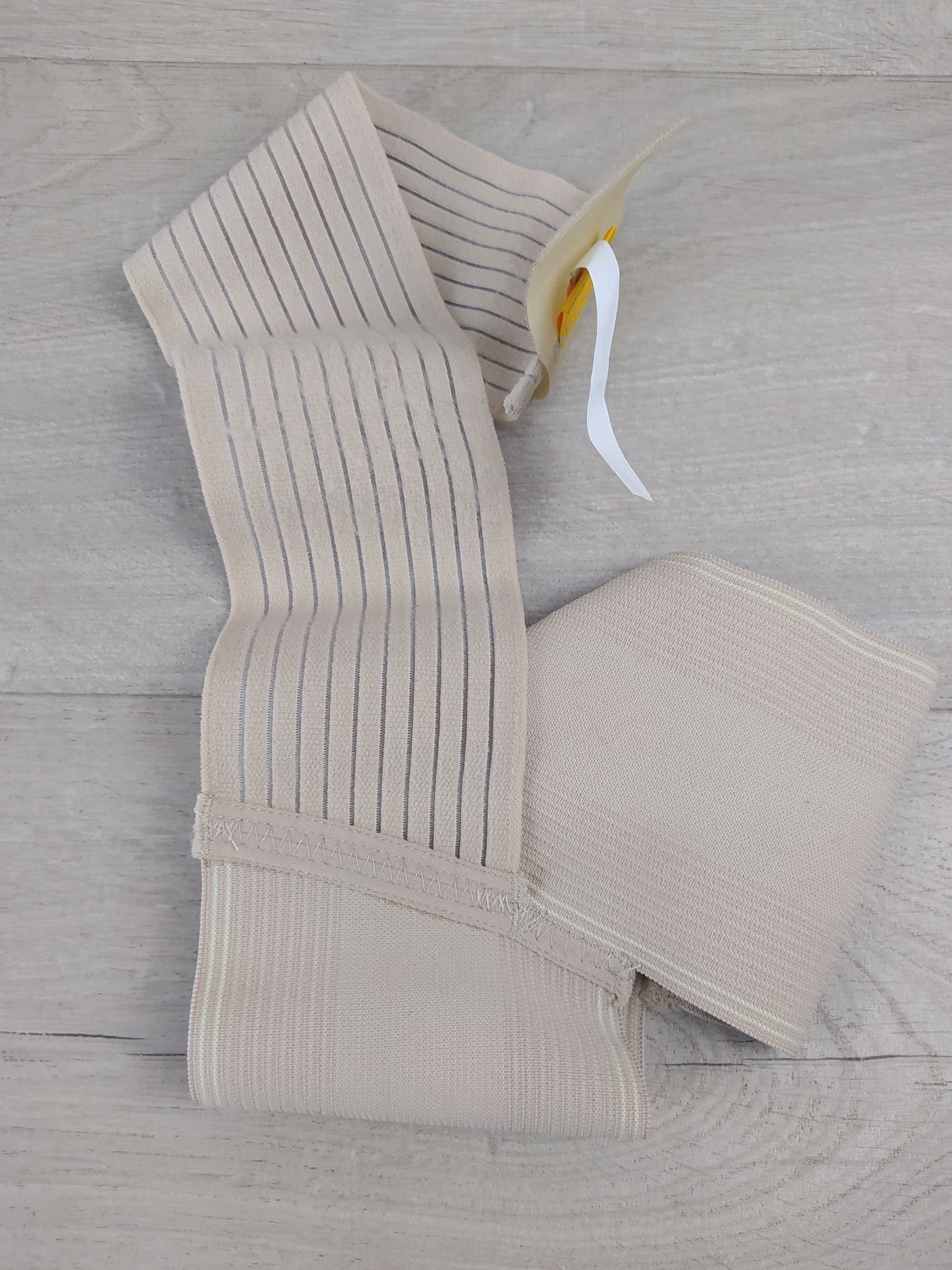 - Z efektem kompresji: Bandaż zapewnia efekt kompresji i kojące ciepło. Materiał: nylon, elastodien, poliester, lateks.