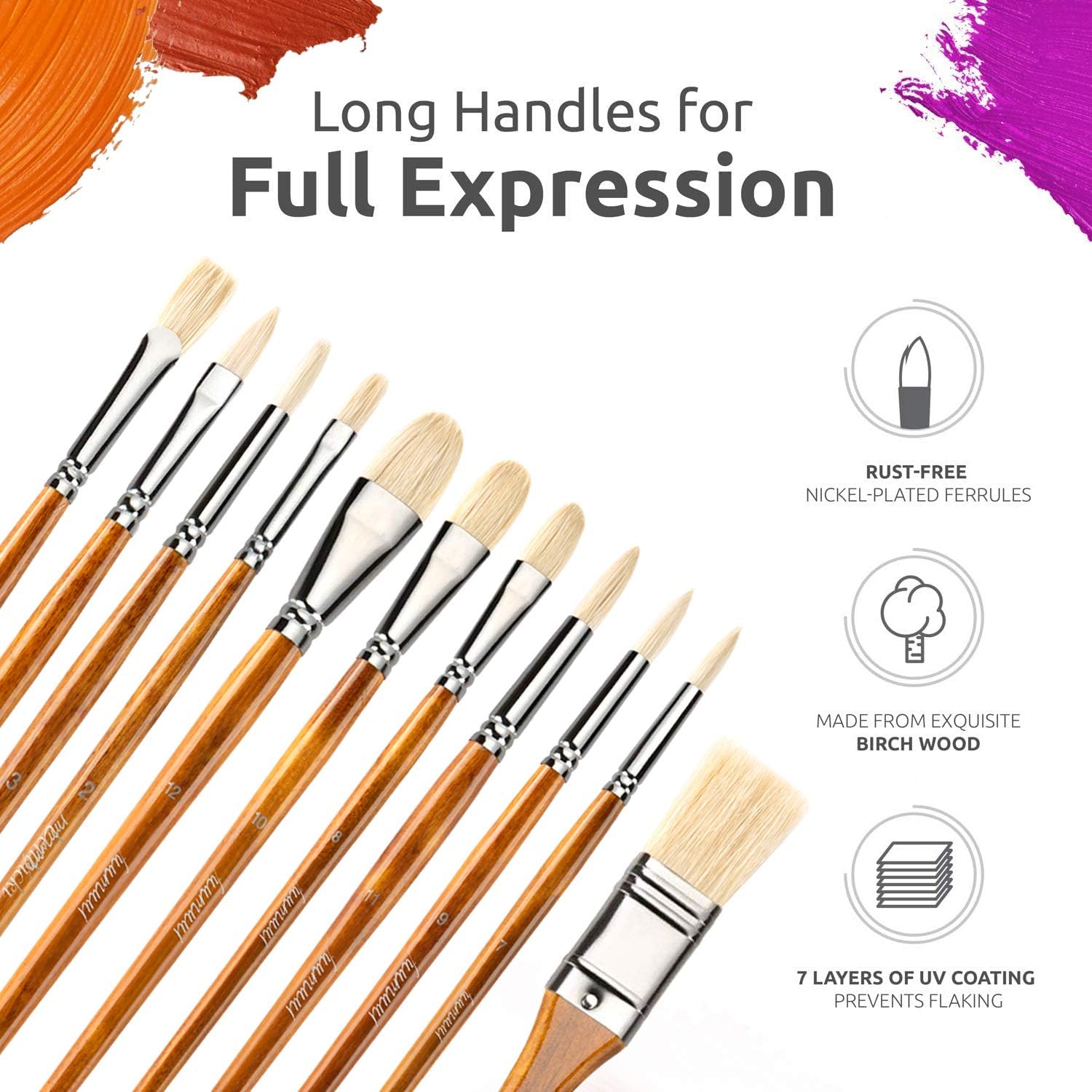 lekkie drewno łagodzi zmęczenie rąk podczas codziennego malowania, co pozwala łatwo kontrolować najdrobniejsze detale i duże pociągnięcia, a długie uchwyty pozwalają na swobodniejszy ruch przy ekscytujących pociągnięciach pędzla i perspektywie na dzieło