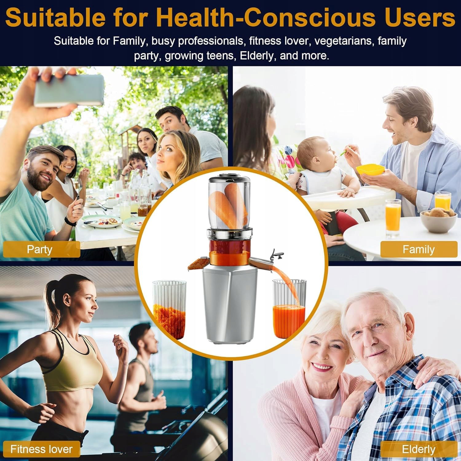 - Sokowirówka do zimnego tłoczenia wyposażona jest w silnik planetarny, powolny i wydajny design, mocny moment obrotowy, dobrą stabilność i trwałość, co spełnia wymagania użytkowników dotyczące zdrowej diety i wysokiej jakości życia, sprawiając, że każda szklanka soku jest pełna składników odżywczych i smaku. Jednocześnie zapewnia niezawodność przy długotrwałym użytkowaniu