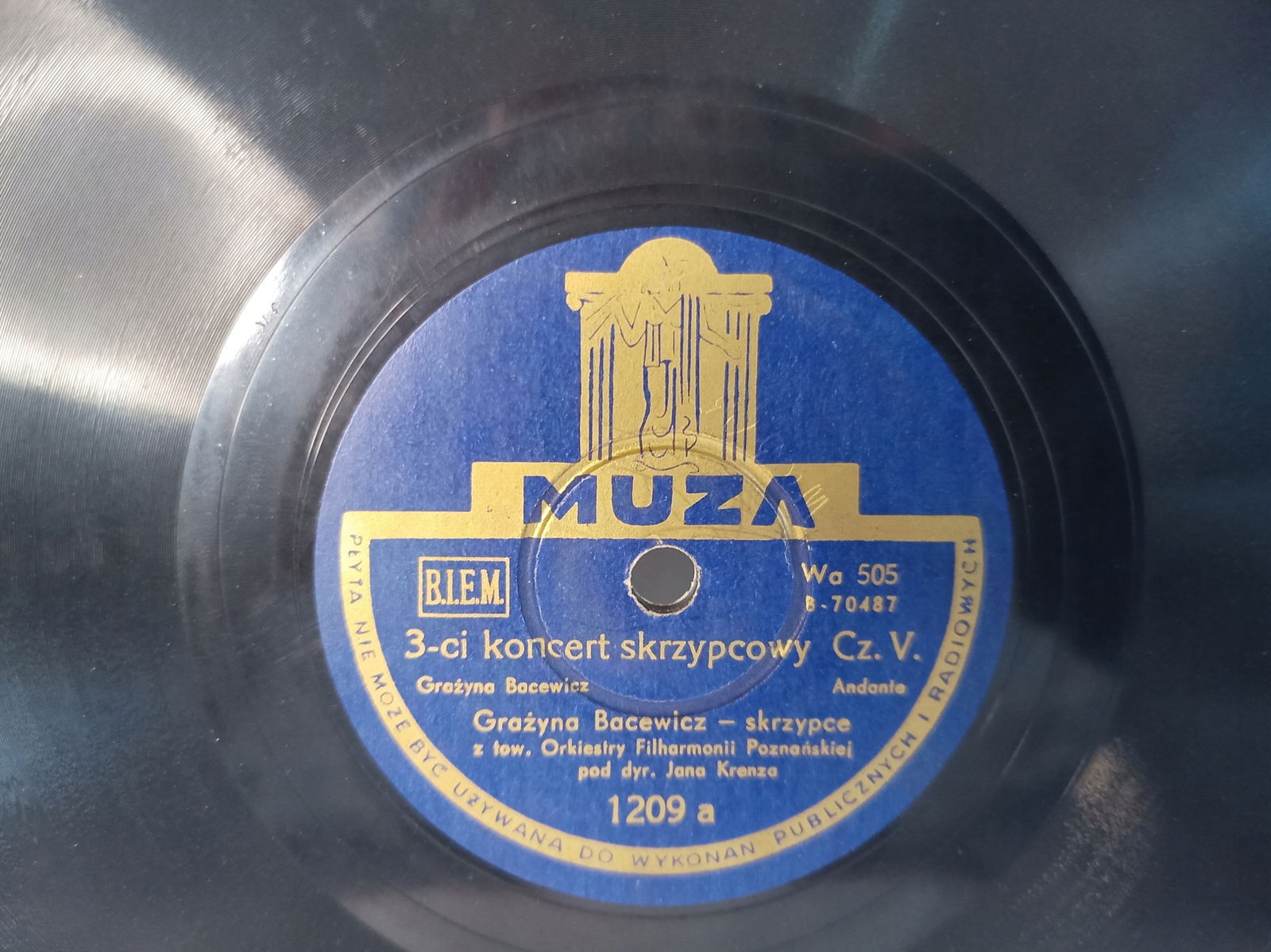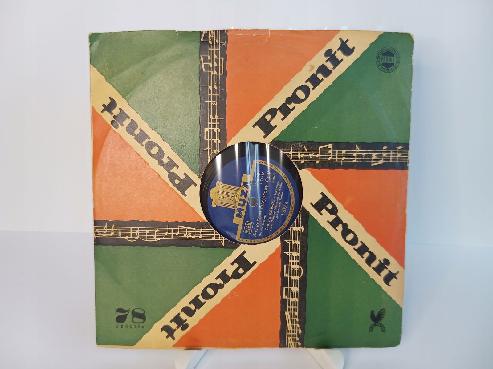 - płyty: szelak to specyficzny nośnik, dlatego zapraszamy do obejrzenia zdjęć i filmu z nagraniem dźwięku z płyty, link do filmu:
