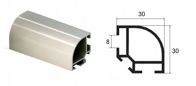 Profil półokrągły aluminiowy anodowany - kolor srebrny.