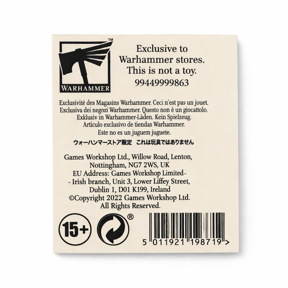W mrocznej przyszłości Warhammer 40,000 trofeów nie dostaje się za darmo—trzeba je wyszarpać, a moneta Gallowfall pozwala Ci zatrzymać zwycięstwo z Kill Team jako mały, ale dumny znak kolekcjonera. Ta metalowa moneta ma 32 mm i ciemny, „gunmetalowy” odcień z surową, lekko zużytą fakturą, która pięknie łapie światło na wypukłym reliefie. W centrum widać brutalny emblemat czaszki i broni: rogata czaszka pod masywnymi głowicami toporów i w otoczeniu ostrzowych sylwetek, wszystko ostro sfazowane na tle wgłębionego pola. Na rancie biegnie równy pas nacięć, nadający całości industrialny, „sprzętowy” charakter—dokładnie taki, jakiego oczekujesz po estetyce Kill Team i klasycznej heraldyce znanej z kodeksów. Moneta trafia do Ciebie na postarzanej, czerwono-pomarańczowej karcie Kill Team Gallowfall z wyraźnym brandingiem Warhammera i ©Copyright 2022 Games Workshop Ltd., a także dopiskiem „Exclusive to Warhammer stores”, więc wygląda i brzmi jak prawdziwy, oficjalny gadżet. Format 32 mm łatwo wpasujesz do tacki kolekcjonerskiej, postawisz obok kości albo wrzucisz do torby jako subtelny cosplayowy akcent na granie. Dorzuć ją na półkę albo podaruj innemu hobbyście—niech przypomina, że w 41. tysiącleciu liczy się każda misja.