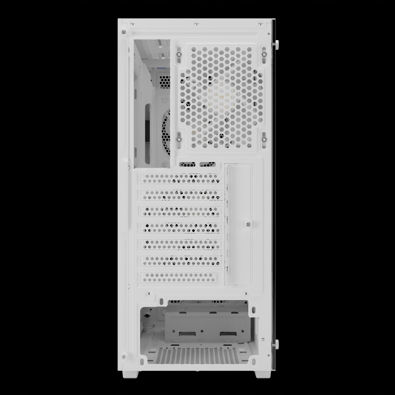 - Wysoki przepływ powietrza: Perforowany, fazowany panel przedni zapewnia optymalny pobór chłodnego powietrza i efektywne chłodzenie komponentów.