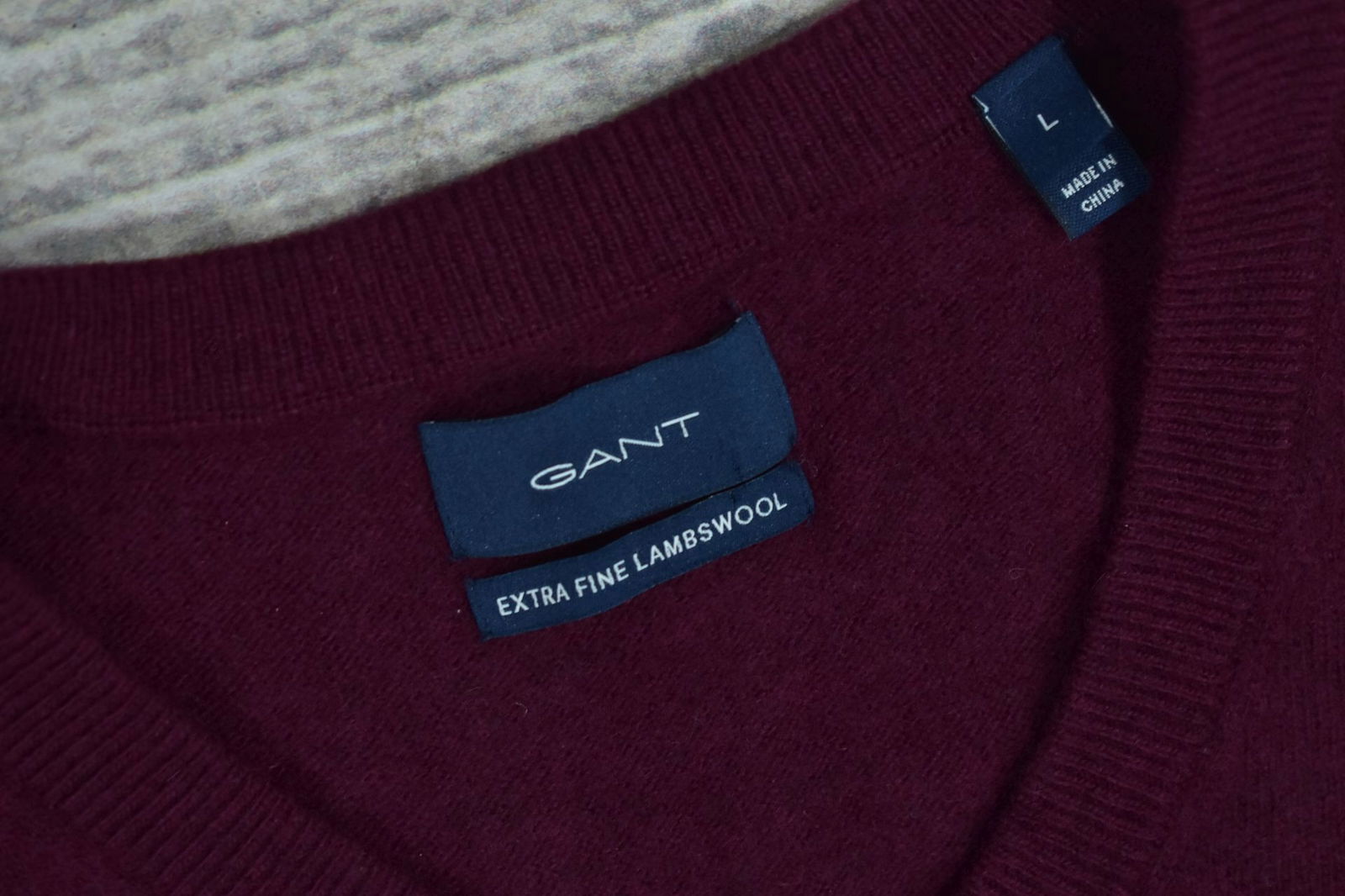 GANT Męski Lekki Sweter z Wełny Jagnięcej z Dekoltem W Kształcie Litery V L
