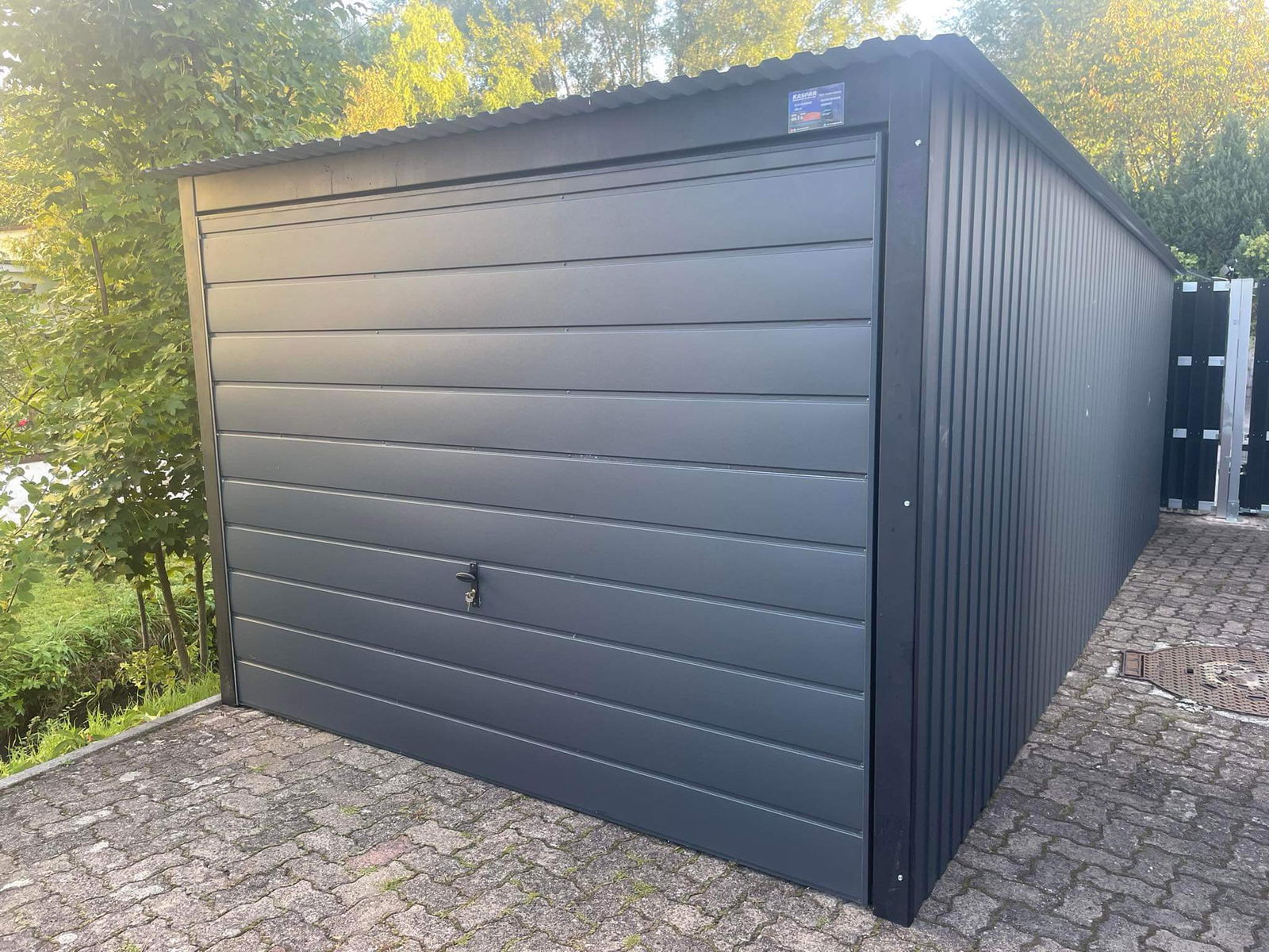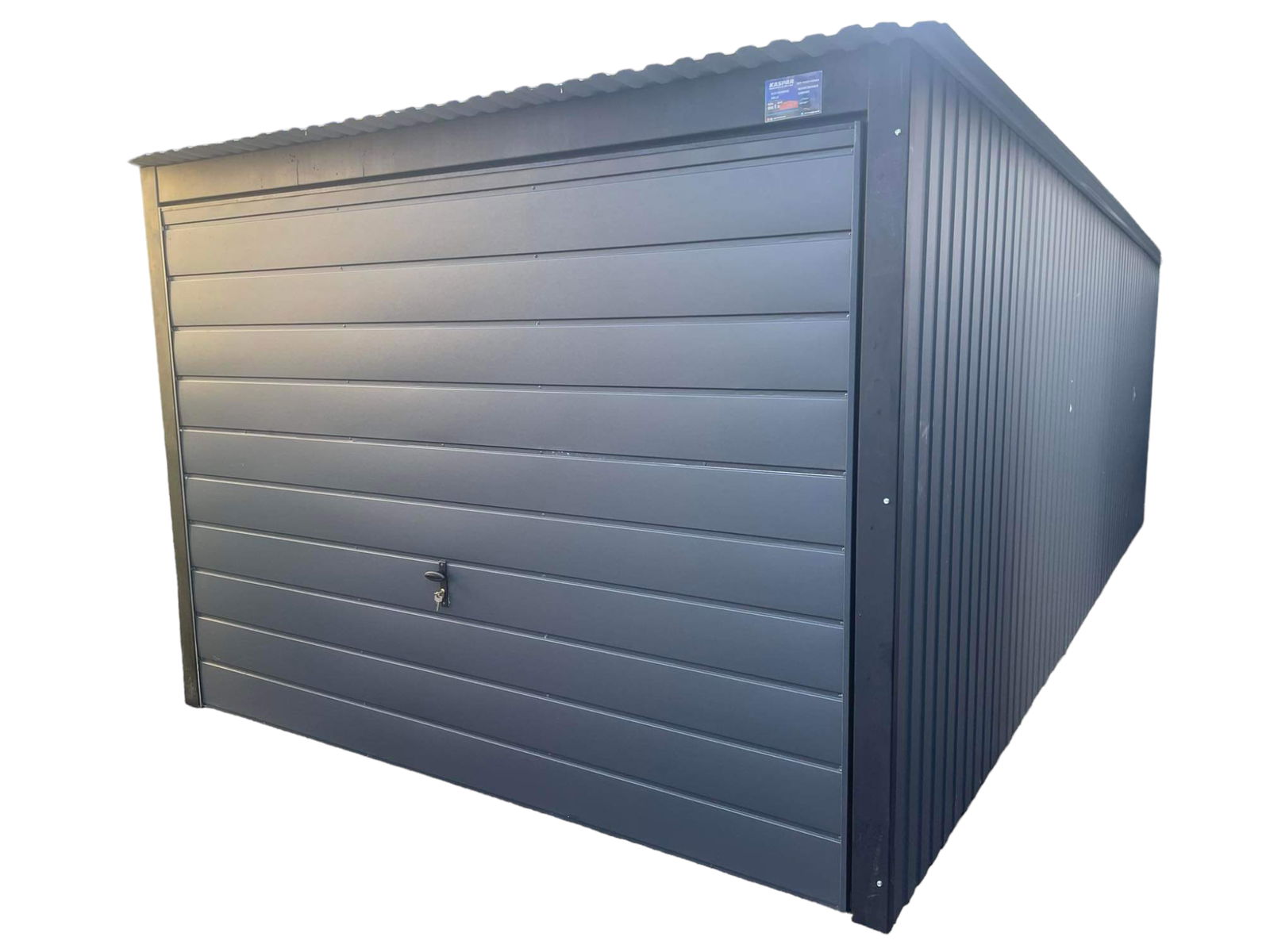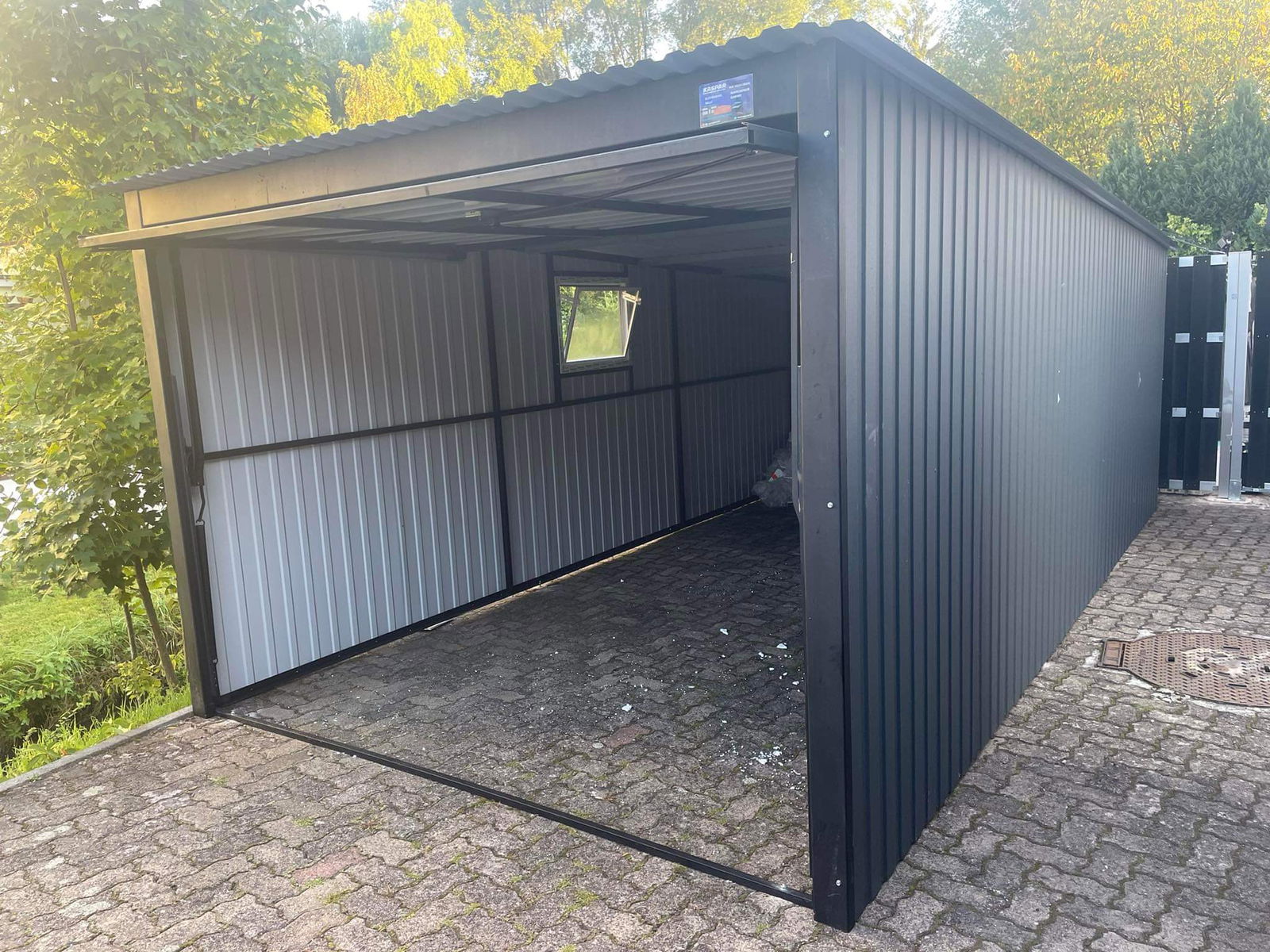 Garaż blaszany 3x7 brama uchylna - okno PCV - antracyt Dach spad w tył GB160