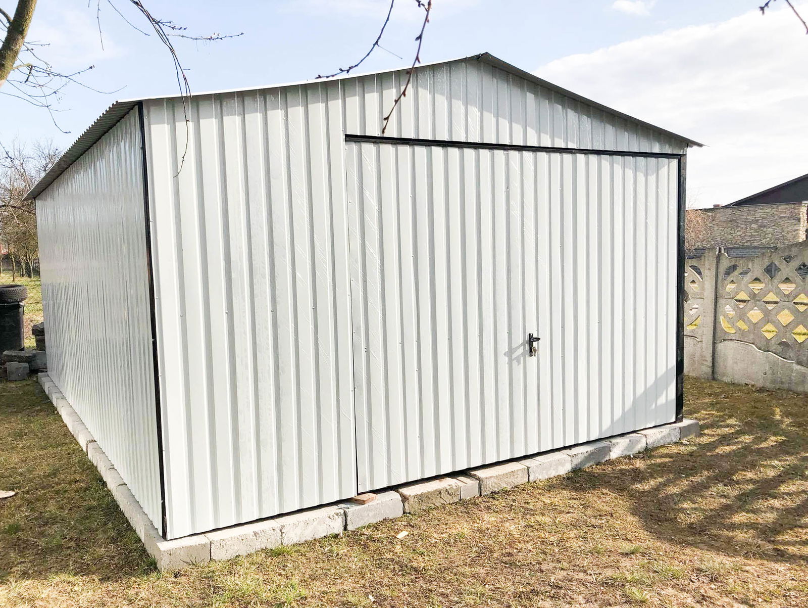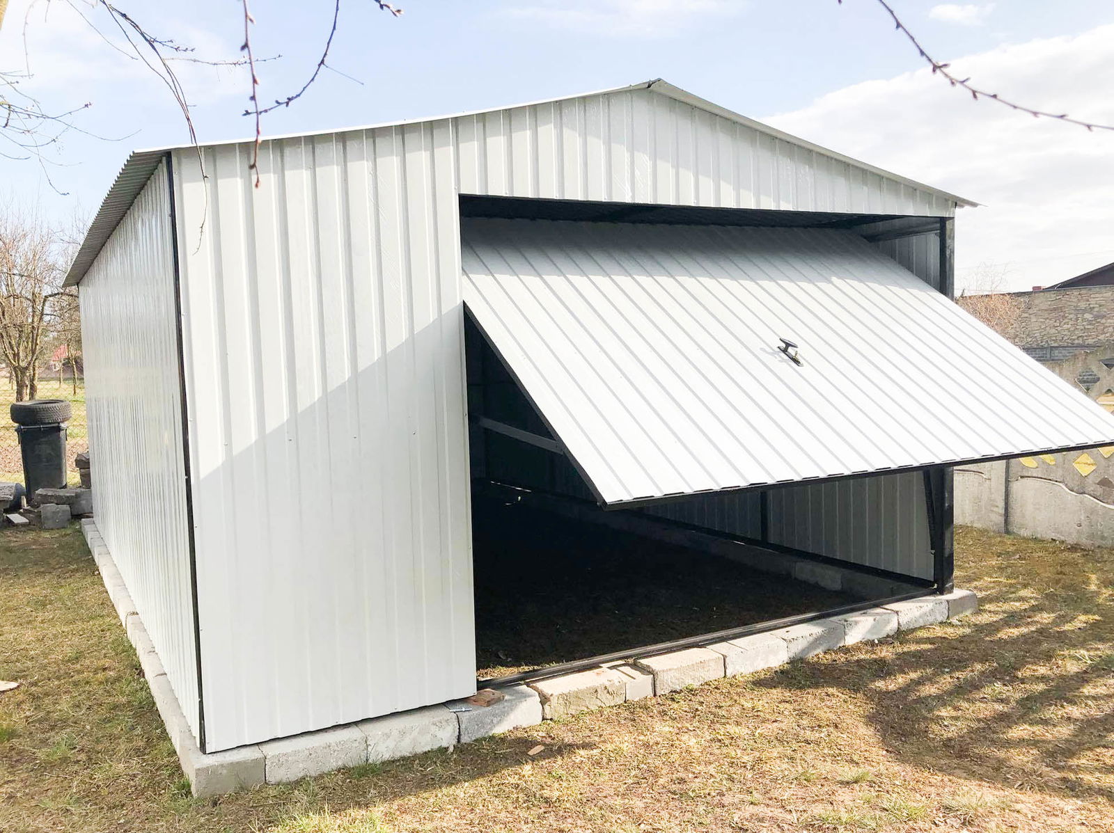 Garaż blaszany 4x6 Brama uchylna Biały - wolnostojący GB169