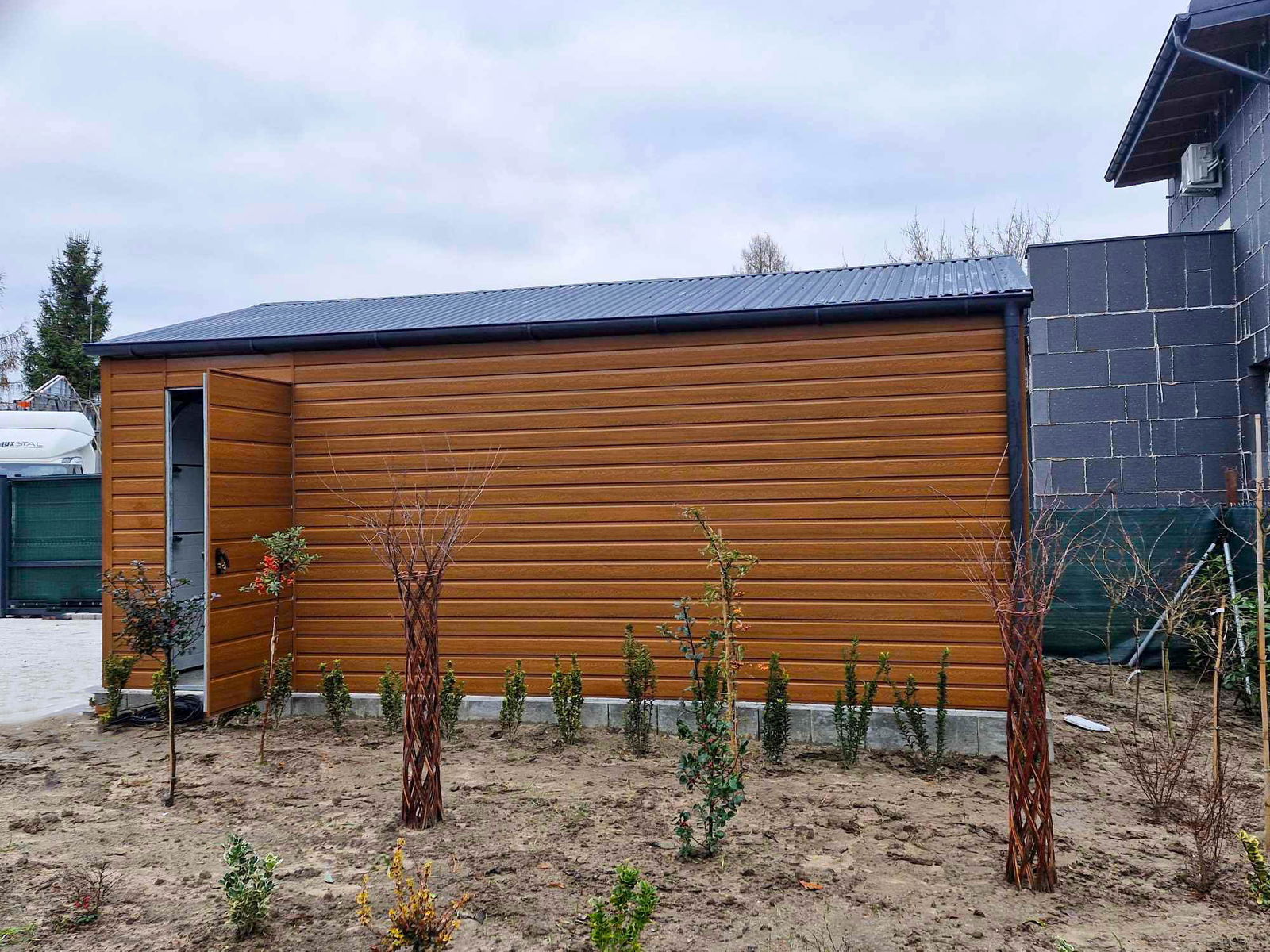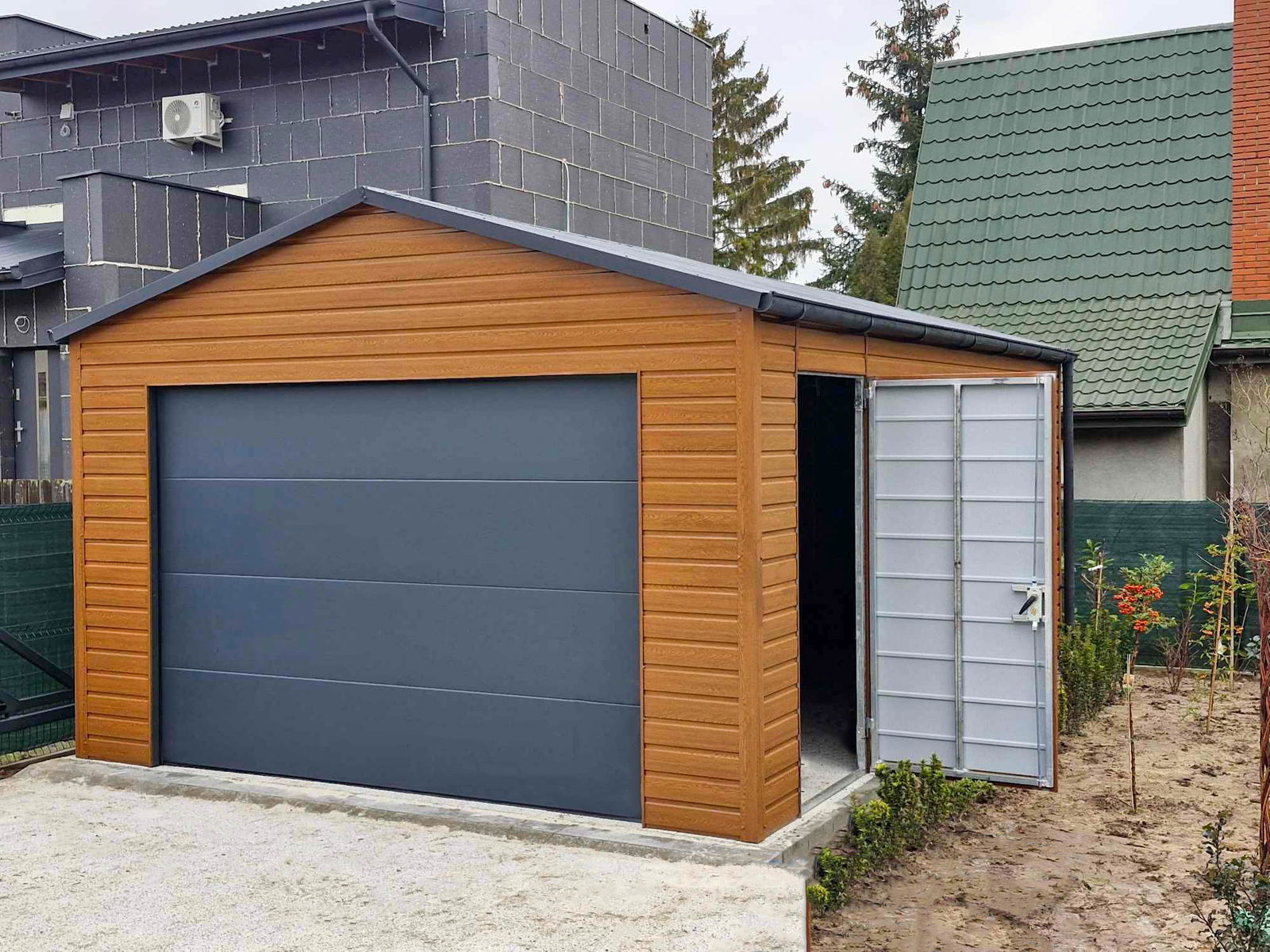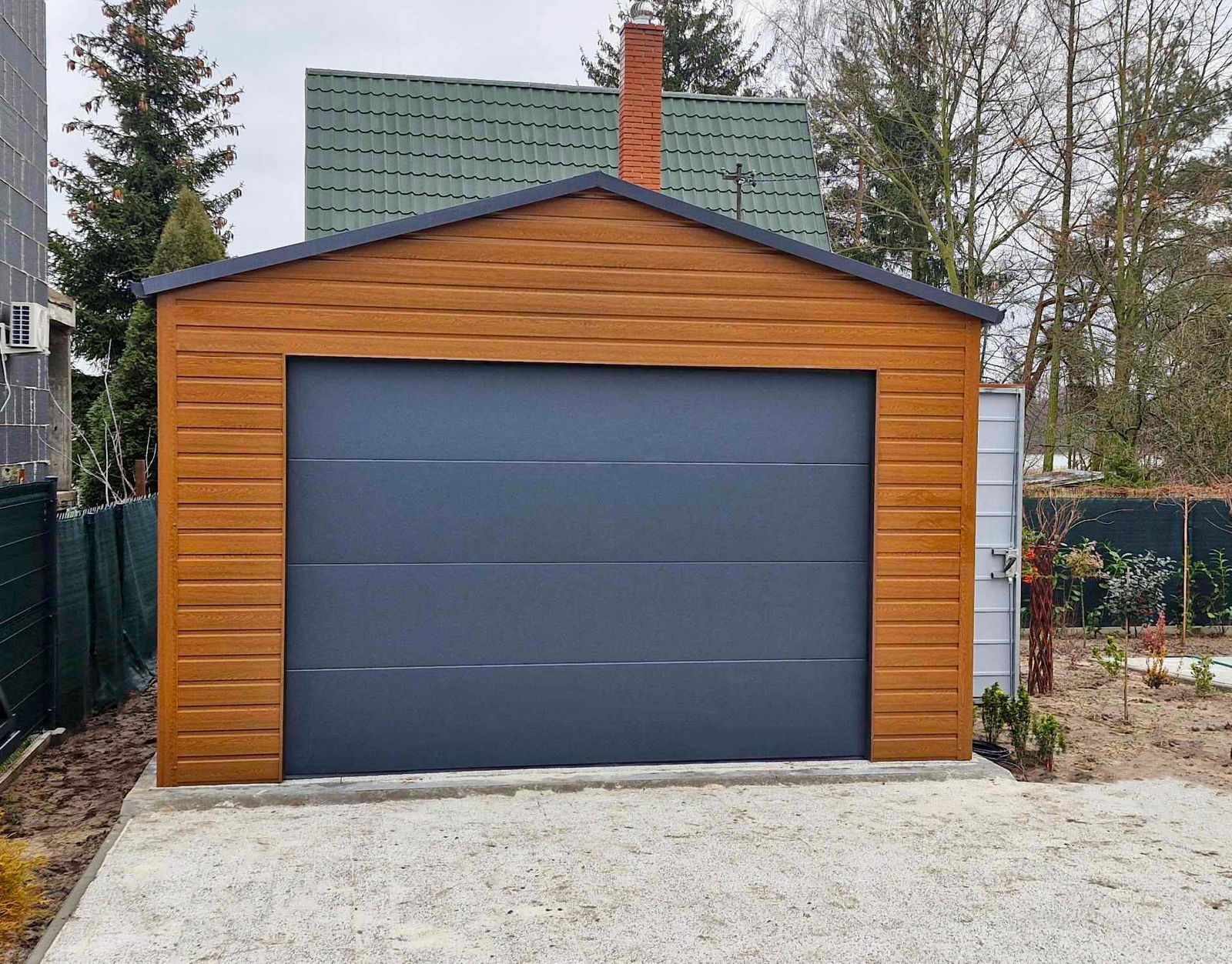 Garaż blaszany 5x6m - Brama segmentowa - drzwi - rynny ID844