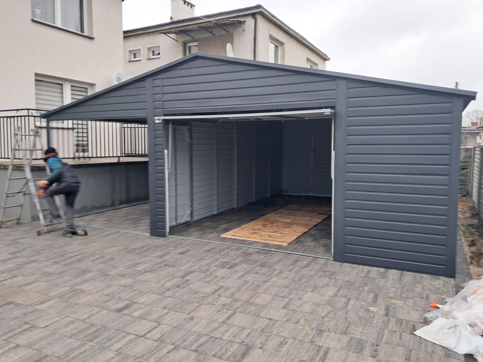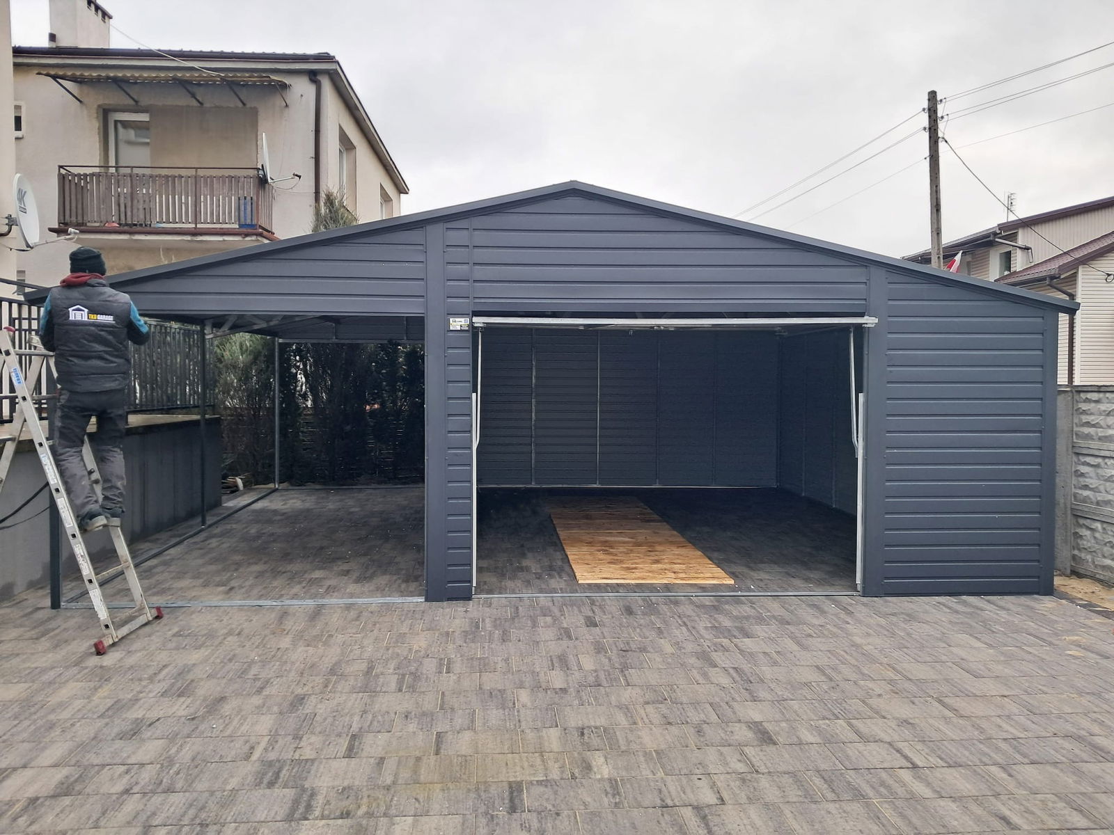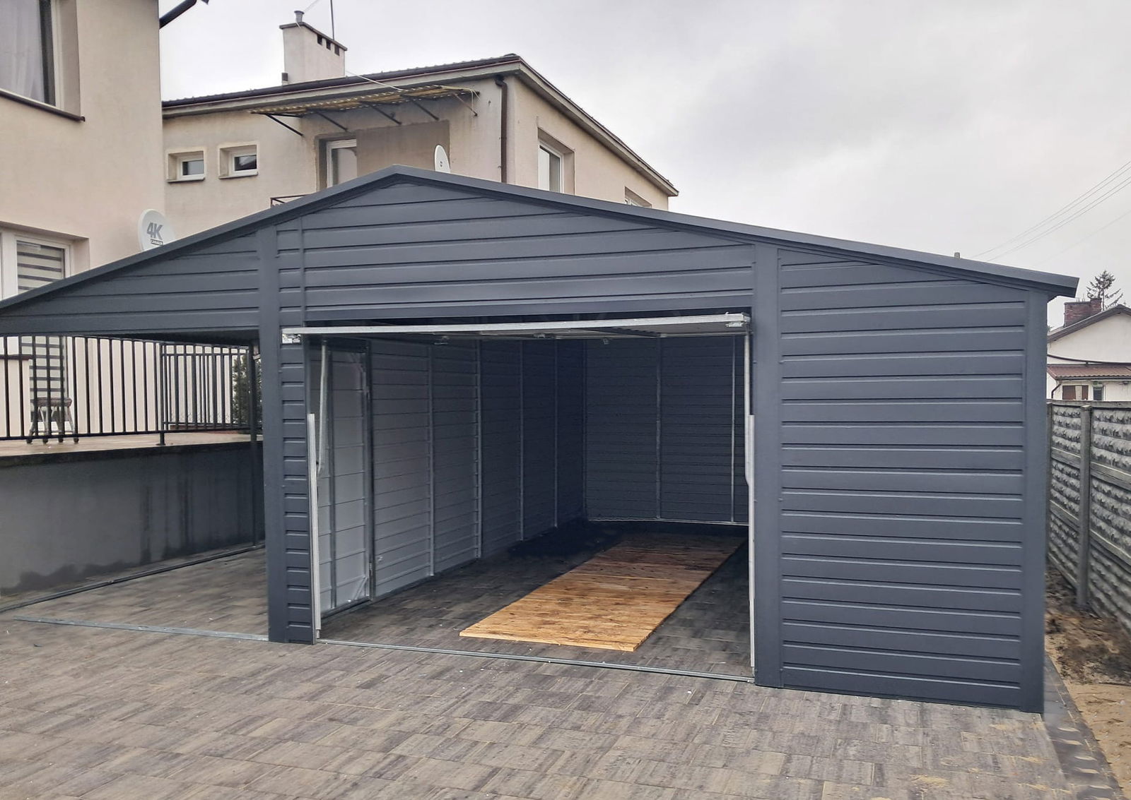Garaż blaszany 5x6m + wiata 4m - Brama uchylna - dach dwuspadowy ID891