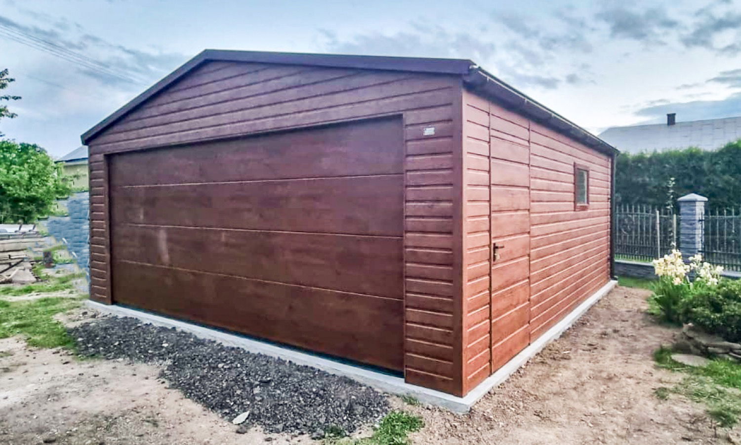 Garaż Blaszany - 6x5 Brama segmentowa - drzwi - 2x okno - rynny ID663