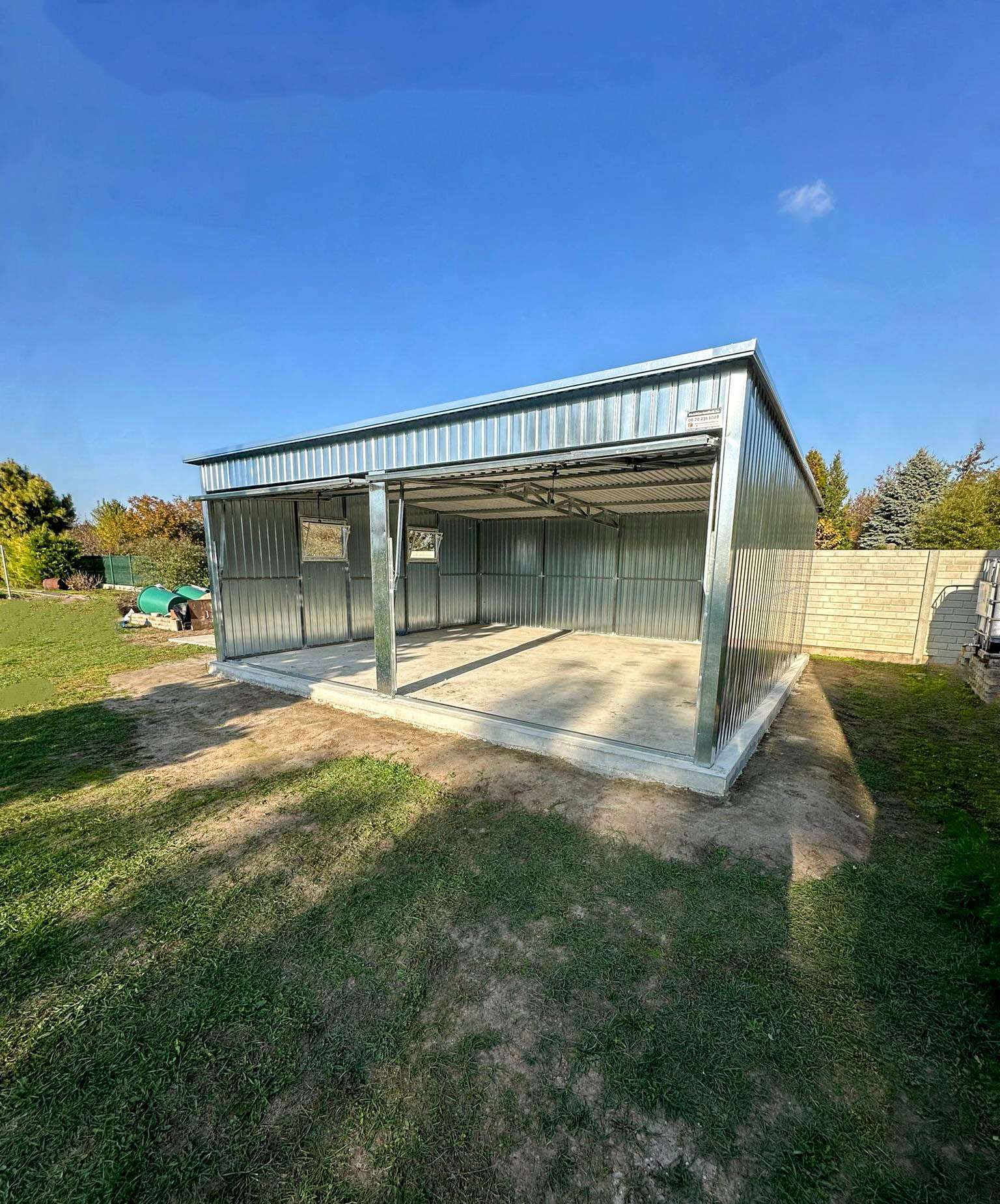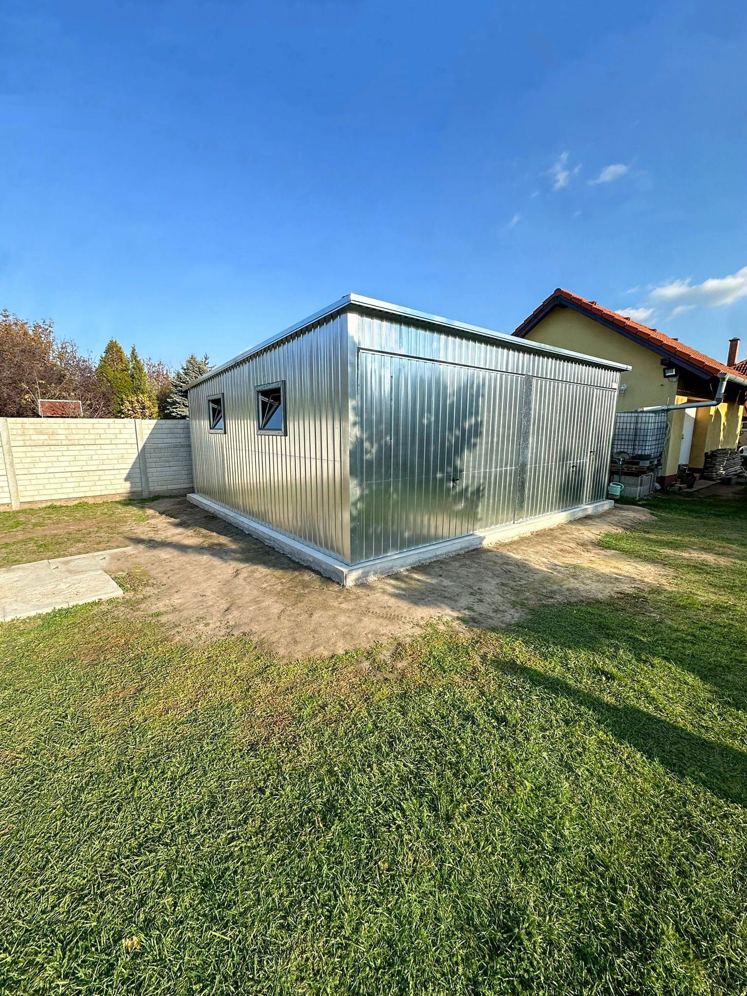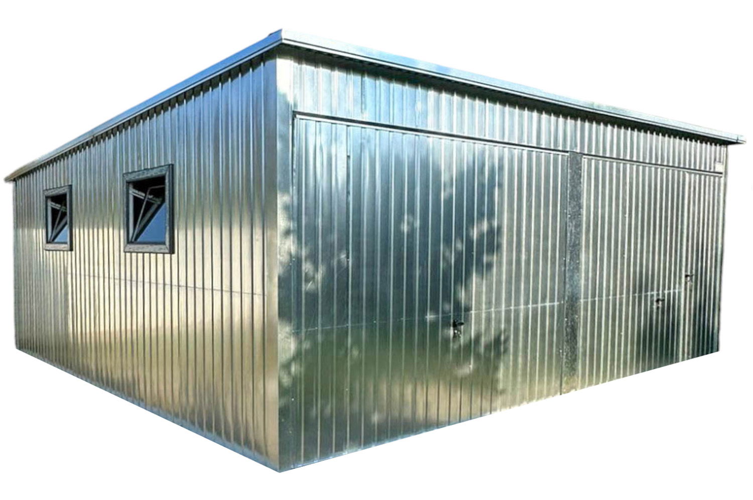 Garaż blaszany 6x6m - 2x brama uchylna - 2x okno - drzwi - ocynk - dach GB181