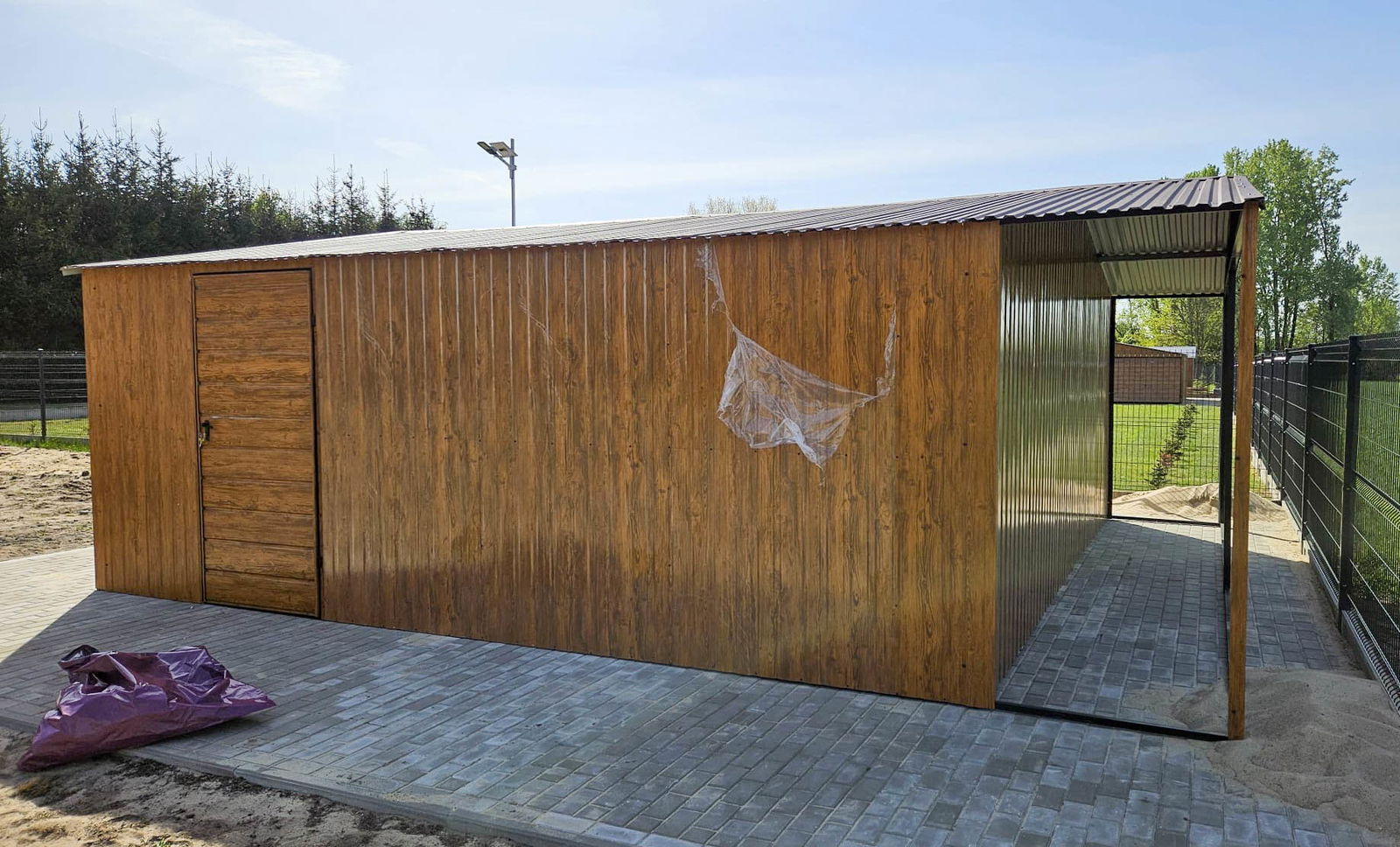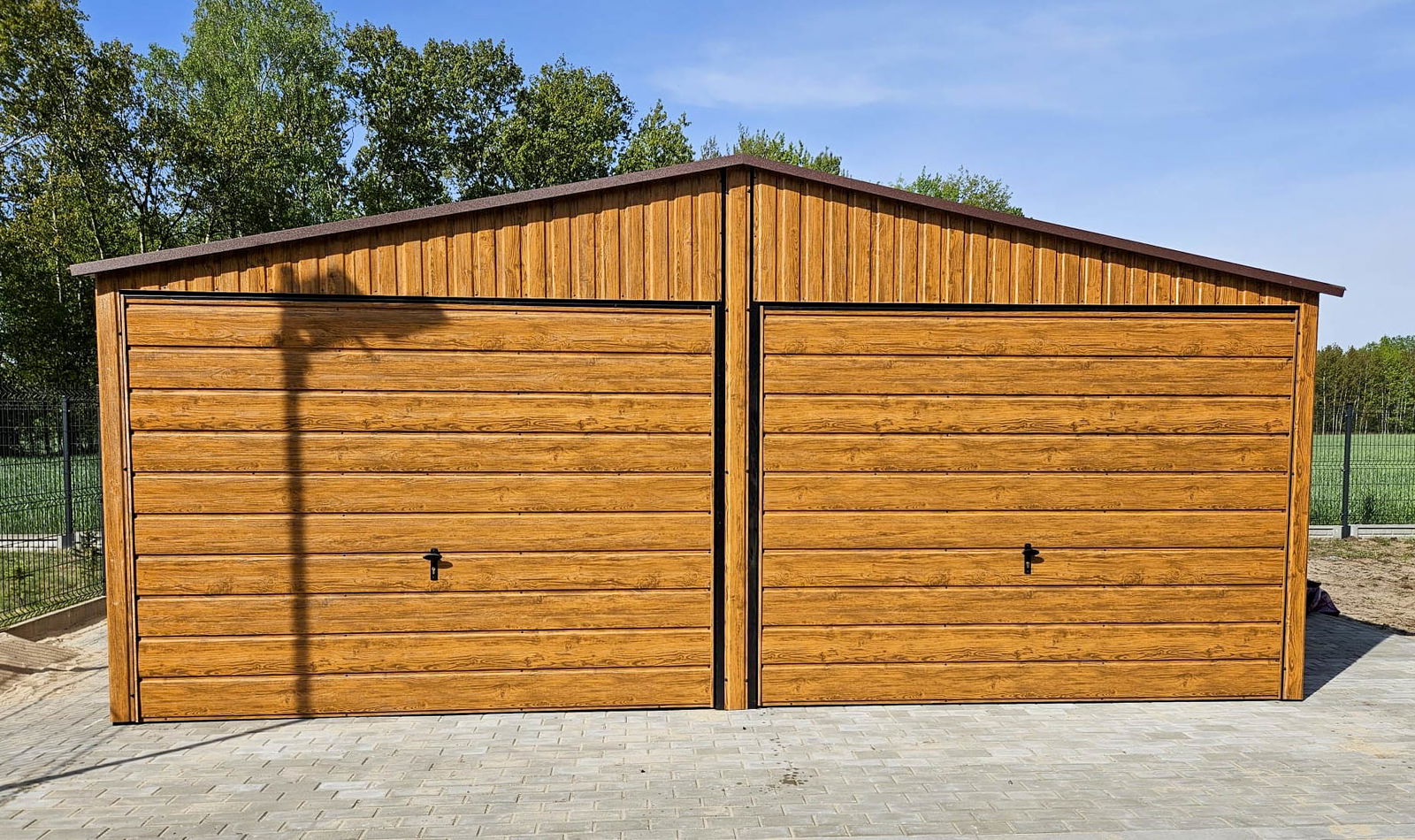 Garaż blaszany 6x6m + wiata 6x1m wolnostojący drewnopodobny 2x brama drzwi GB182