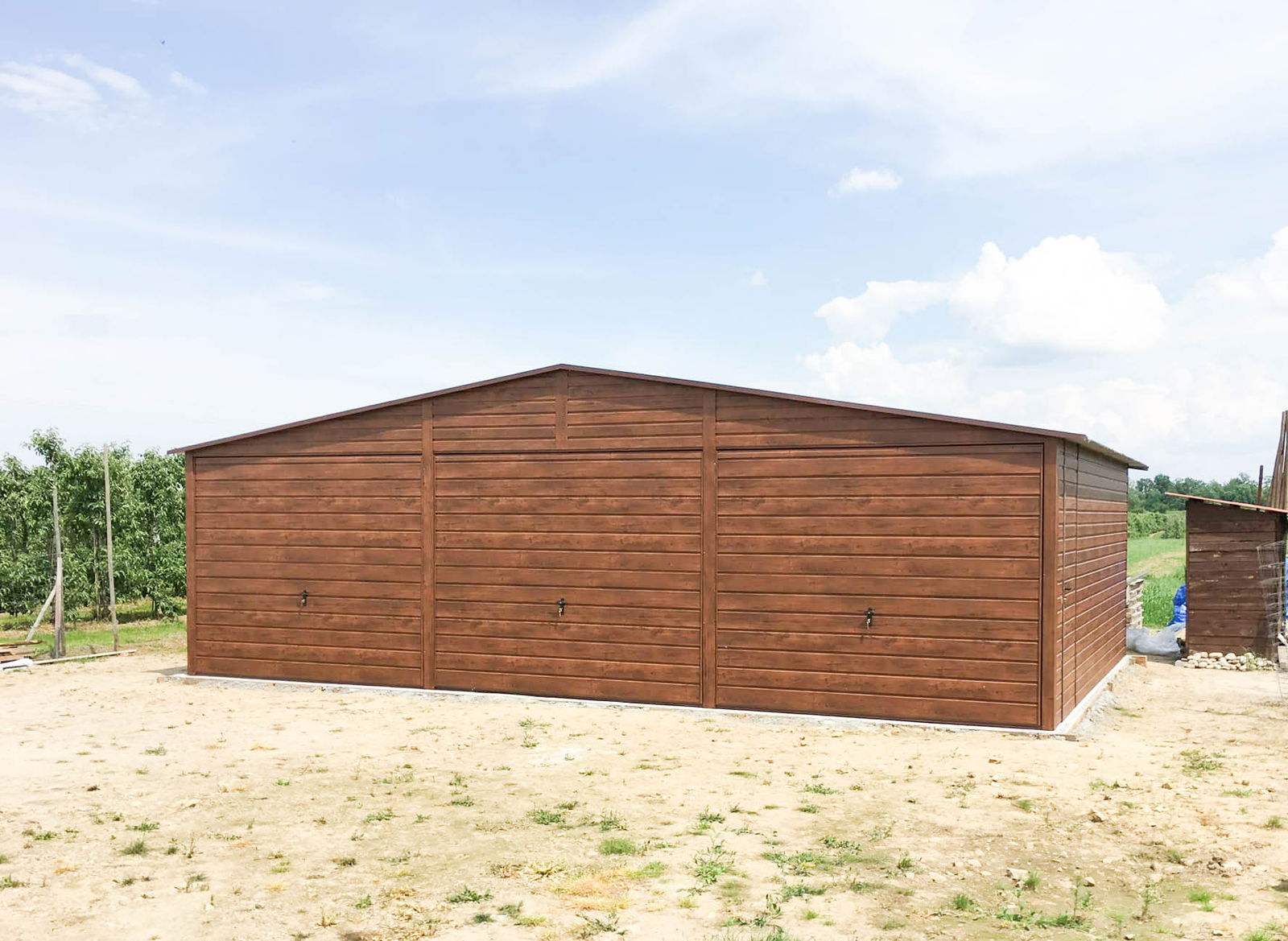Garaz blaszany 9x6m - 3x brama uchylna - drzwi - dach dwuspadowy ID793