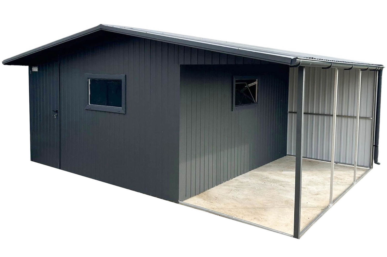 Garaż blaszany Domek ogrodowy 4x6m Wiata 2x6m Drzwi 2x Okno Rynny ID921