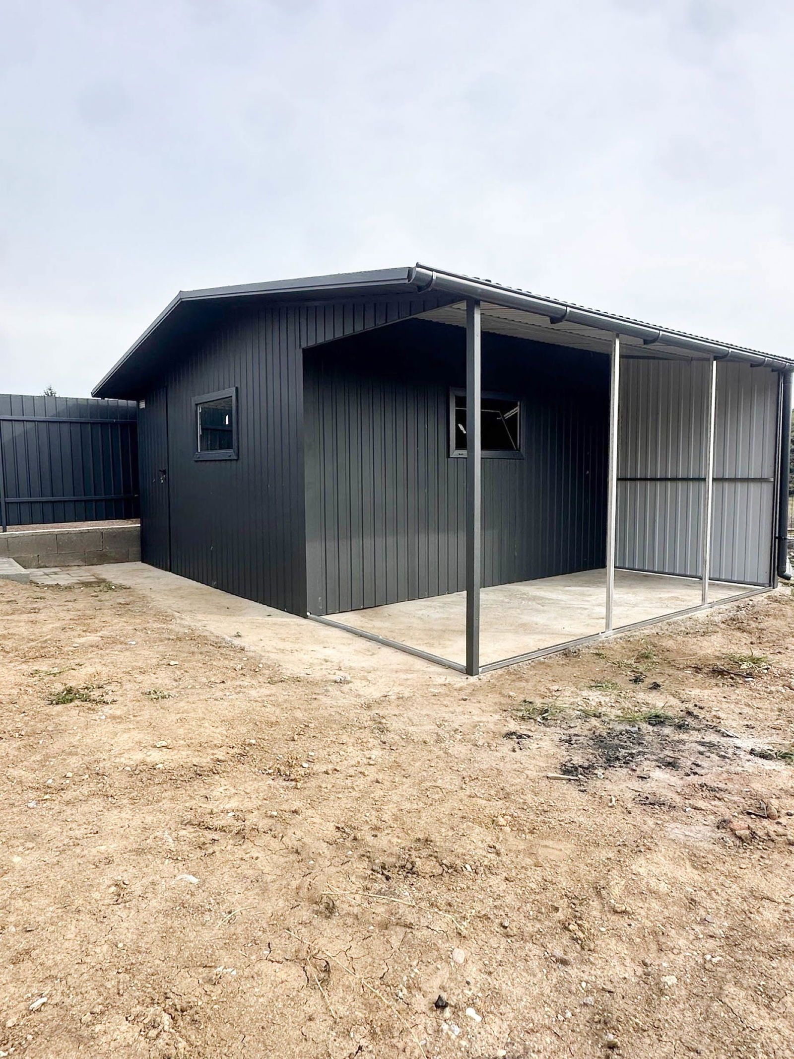 • szerokość: 4 m• długość: 6 m• Wiata 2x6m z zabudowaną tylną ścianą • dach: Dwuspadowy Kolor Ciemny Grafit Antracyt BTX7016• Wypust dachu na 50cm • 2x Okno uchylne PCV 80x60cm• Drzwi 90x200cm Przetłoczenie T7 pion Kolor: Ciemny Grafit Antracyt BTX7016• Przetłoczenie ścian T7 pion Kolor: Ciemny Grafit Antracyt BTX7016• Wysokość światła wjazdu 200 cm • wysokość ścian: 213 cm.• wysokość w szczycie: 270cm • Konstrukcja - profil zamknięty ocynk• Zamek + Klucze• nity + wkręty w kolorze garażu• obróbki ścian i dachu Kolor: Ciemny Grafit Antracyt BTX7016• Rynny i spusty